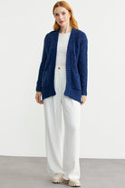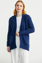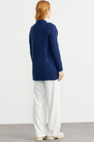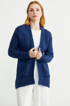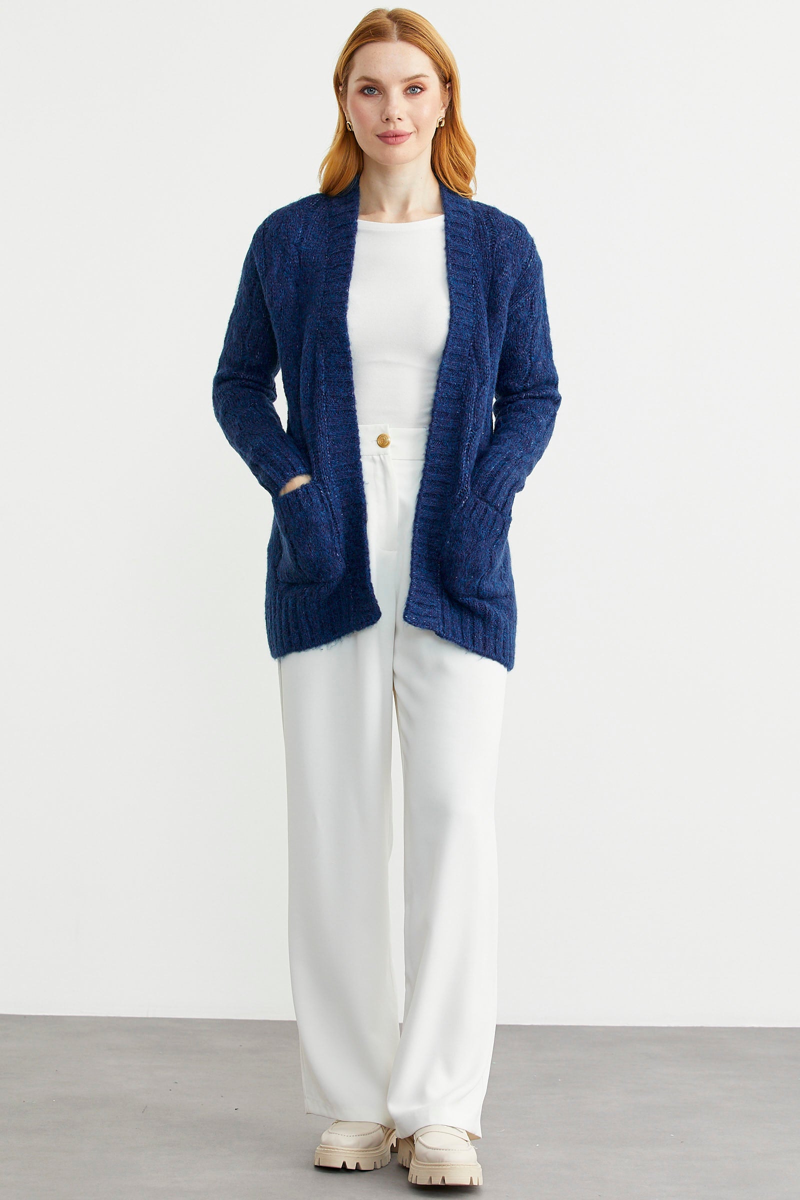 Saç Örgü Motifli Cepli Triko Hırka - Lacivert
