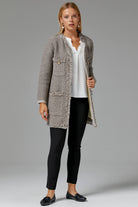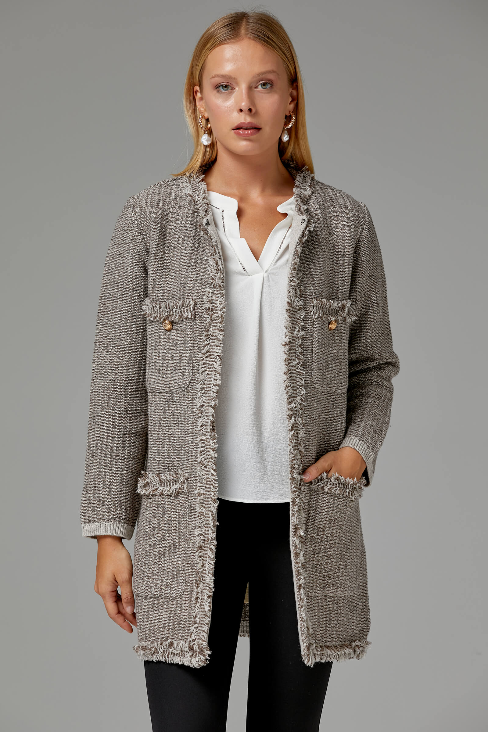 Sıfır Yaka Astarlı Triko Ceket - Vizon - Kahverengi