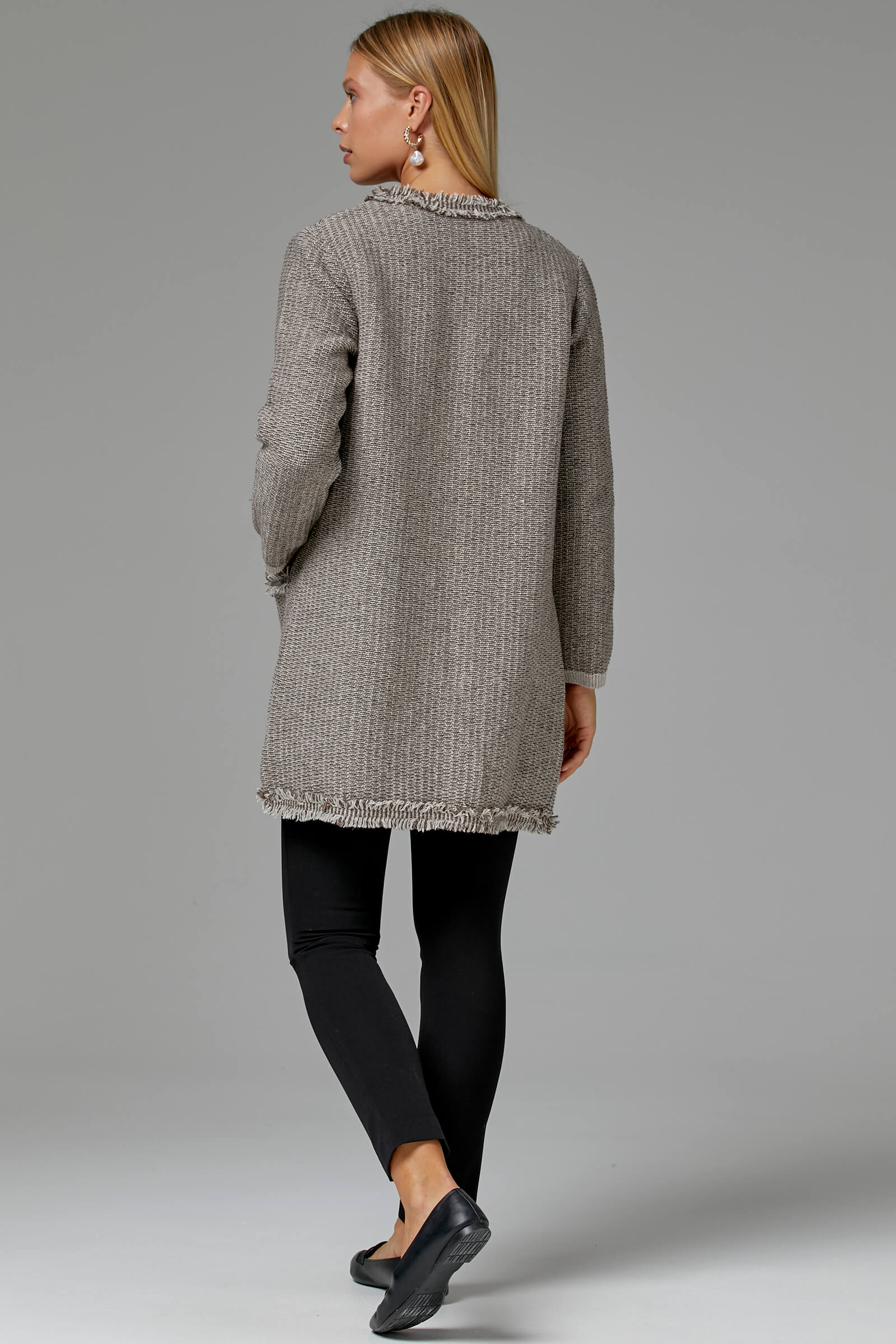 Püskül detayı ile ön plana çıkan desenli triko ceket birçok kombininize eşlik edecek. Triko ceket ile ofis şıklığını tamamlayabilir, jean pantolonlar ile hafta sonu şıklığını rahat kombinlerinde buluşturabilirsin.