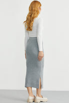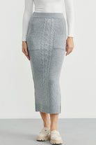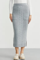 Cep Detaylı Uzun Triko Etek - Gri