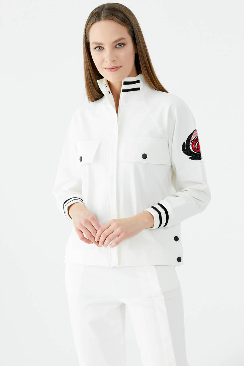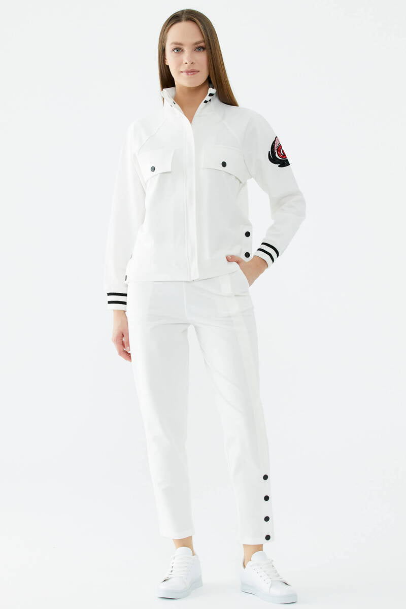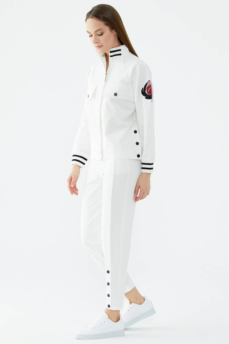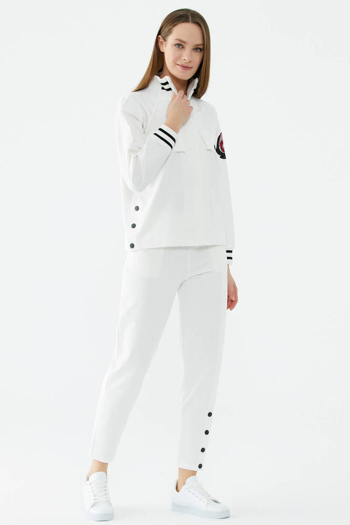 Dik Yaka Çıtçıt Detaylı Eşofman Takım - Ekru