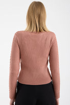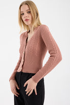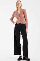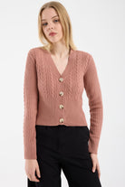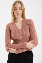 Düğmeli Pirinç Motifli Triko Hırka - Gül