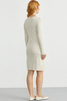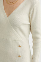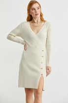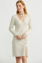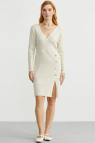 Kruvaze Düğme Detaylı Triko Elbise - Taş