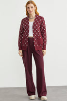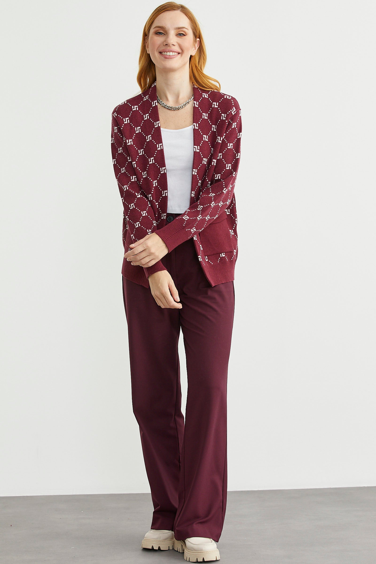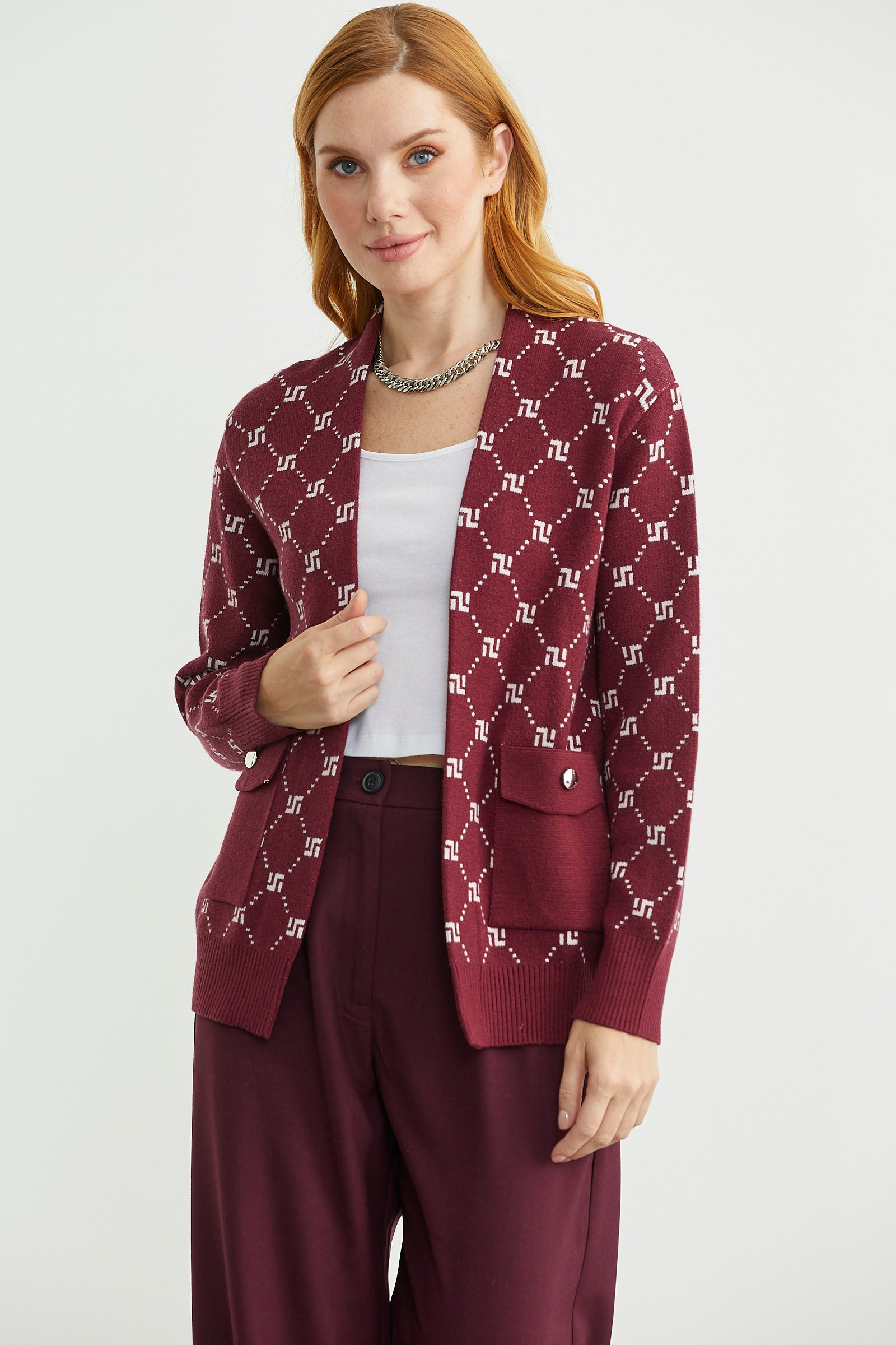 Logolu Cep Detaylı Oversize Triko Hırka - Bordo