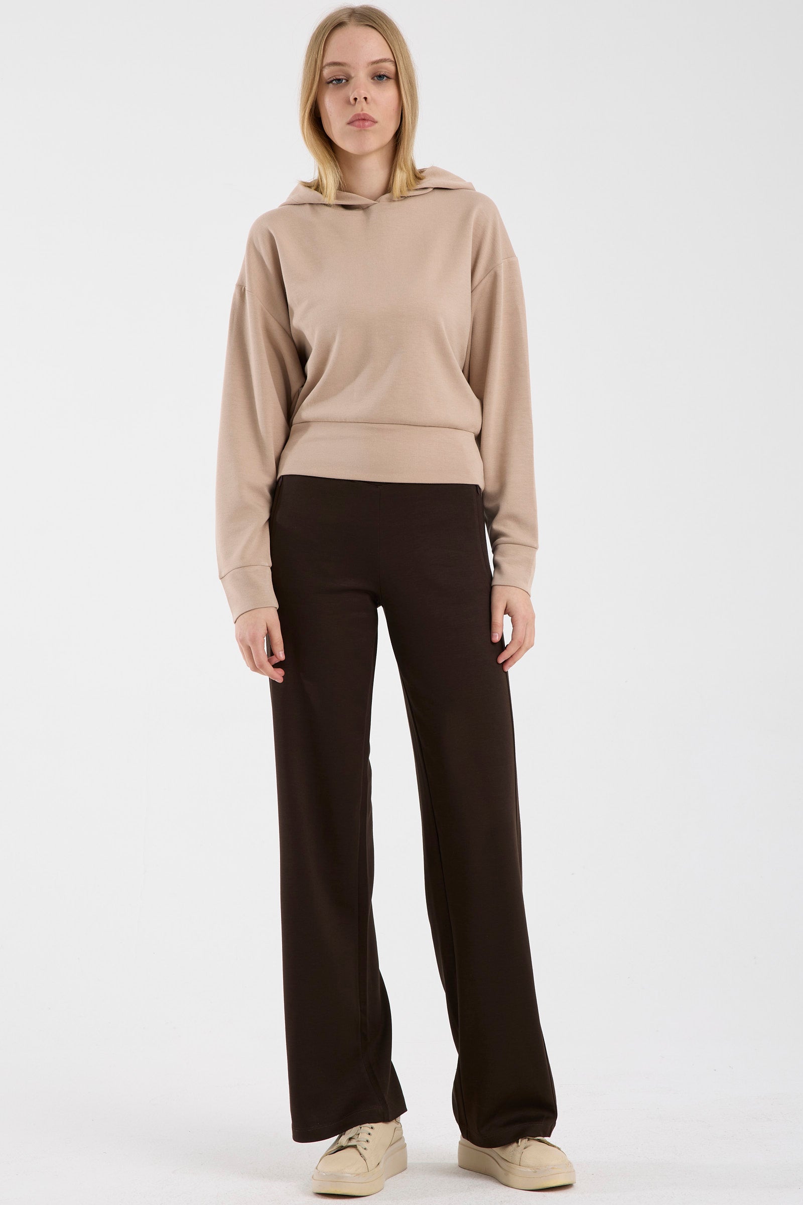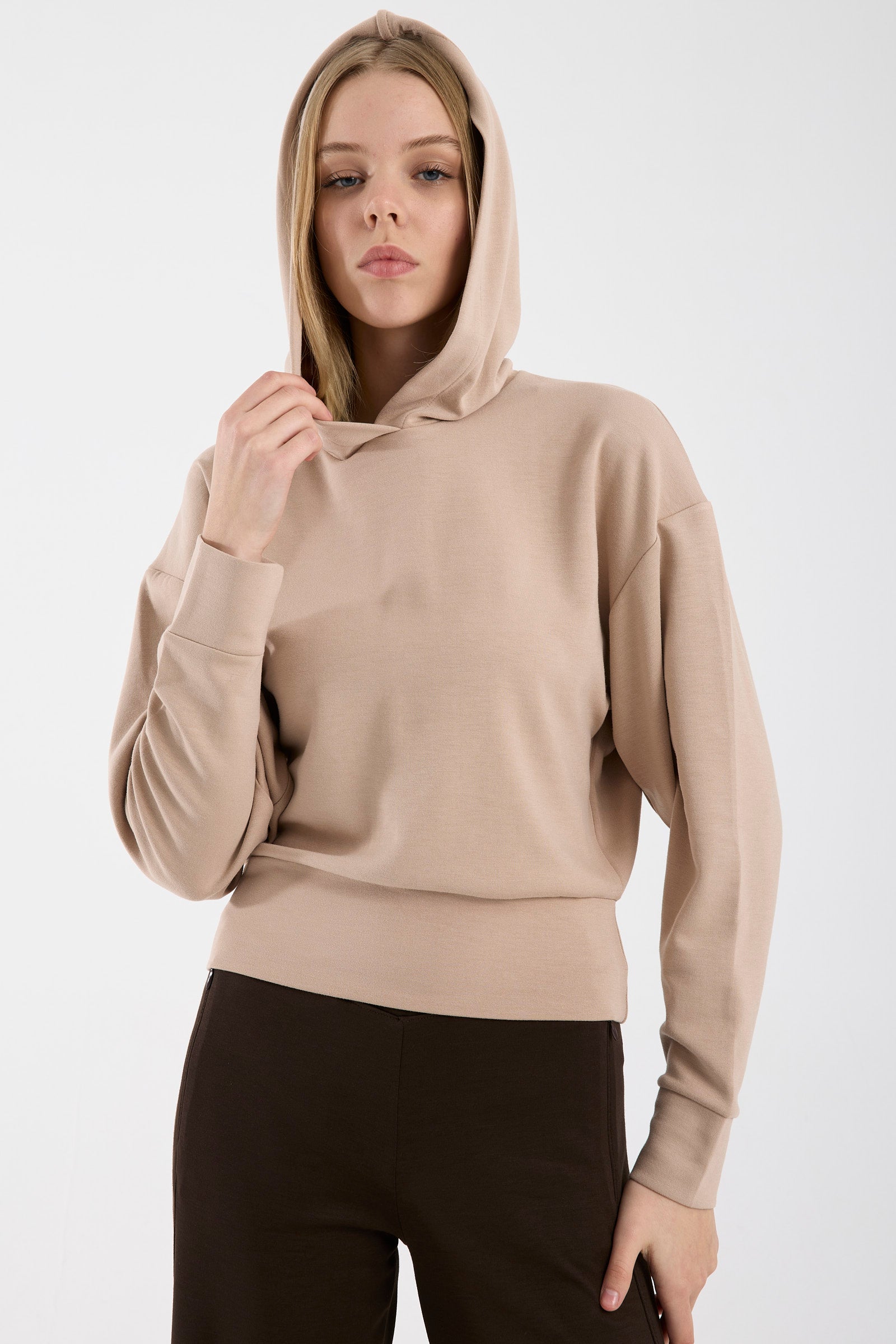 Oversize Kapüşonlu Yumuşak Dokulu Sweatshirt - Bej