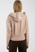 Kapüşonlu, uzun kollu crop sweatshirt. Sırtında plise detaylı, düşük kollu, nefes alabilen kumaştan üretilmiştir.