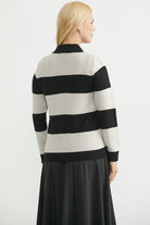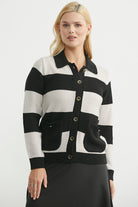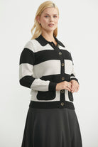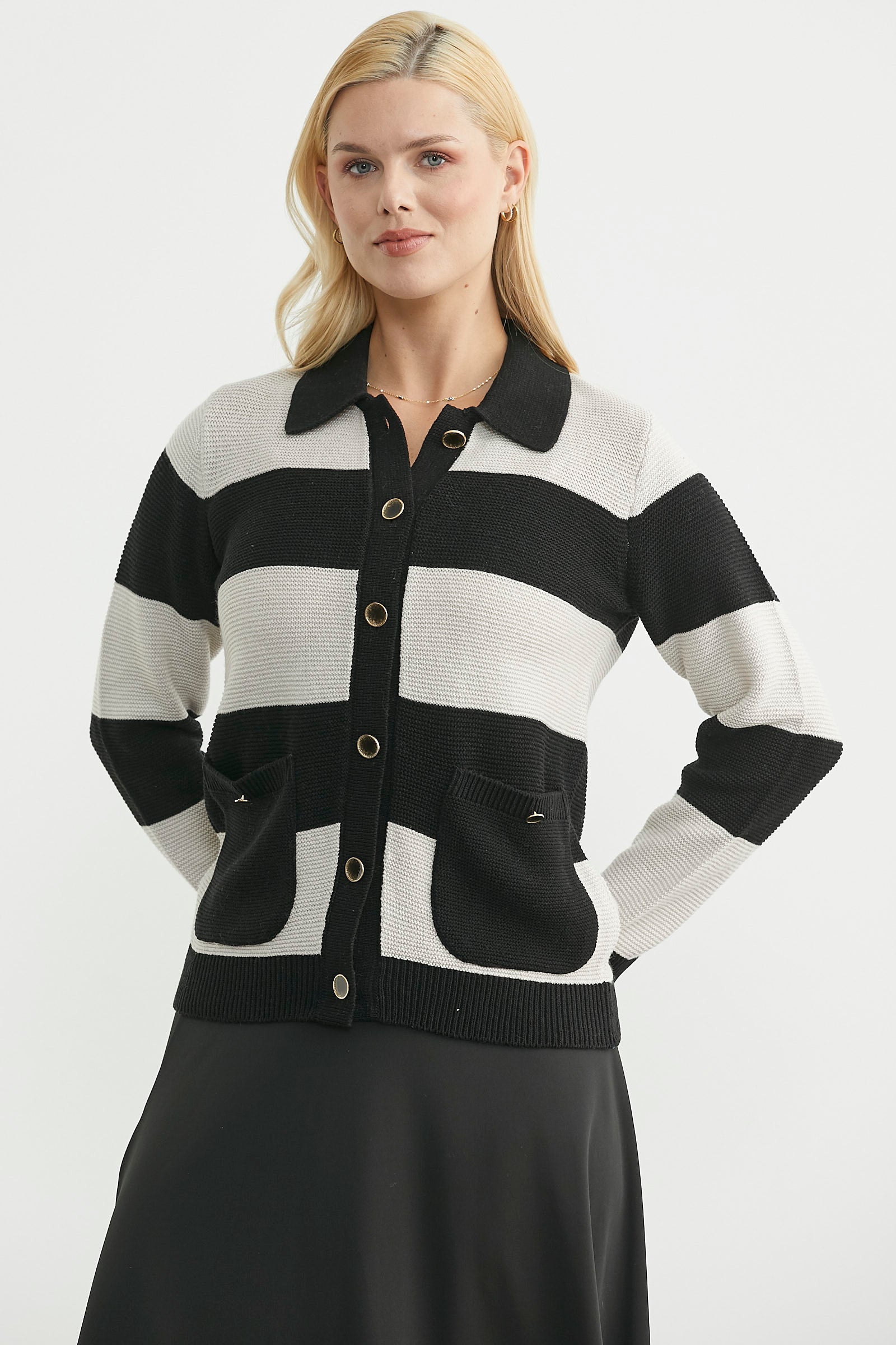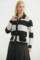 Yünlü Renk Çizgili Cepli Triko Hırka - Siyah