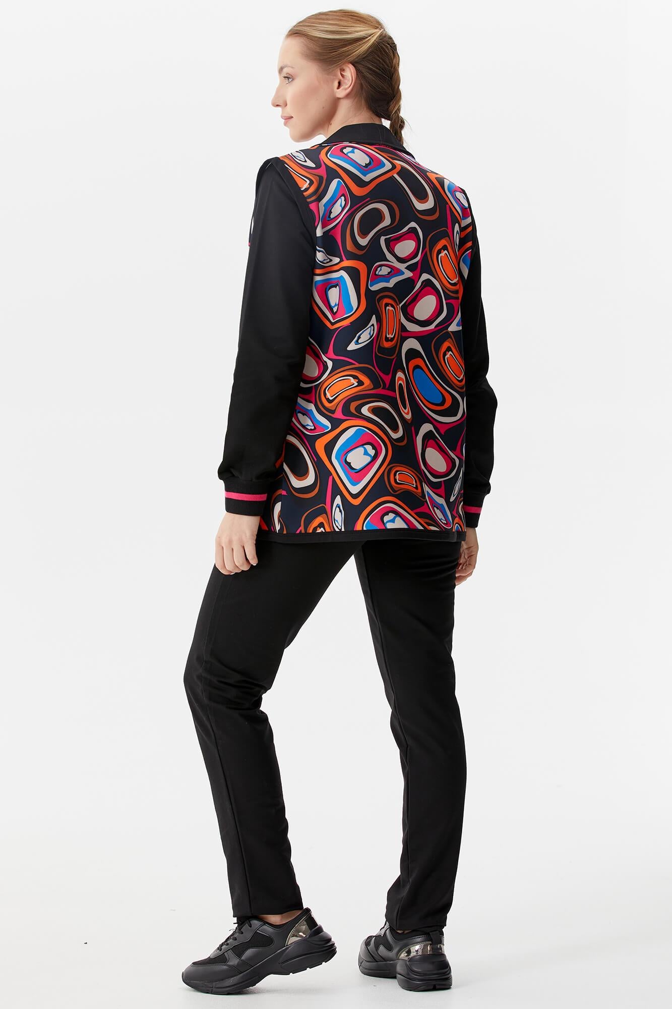 Dik yaka, sıfır kollu, fermuar kapatmalı desenli yelek. Sıfır yaka, etek ucu, manşetleri ve yakası ribanalı, nakış detaylı sweatshirt ve beli bağcıklı, boru paça eşofman altından oluşan üçlü takım. ÜST Kumaş İçeriği: %60 Viskoz %35 Polyester %5 Elastan Desen: Desenli Yaka Tipi: Dik Yaka Kol Tipi: Sıfır Kol Ürün Boyu: 72 cm Kalıp Tipi: Standart Kalıp Cep: Cepli ALT Kumaş İçeriği: %60 Viskoz %35 Polyester %5 Elastan Desen: Düz Paça Tipi: Boru Paça Bel Tipi: Bağcıklı Cep: İki Adet Yan Cep Ürün Boyu: 103 cm Kalıp Tipi: Standart Kalıp Mankenin Giydiği Beden: S Manken Ölçüleri: Boy: 175 cm Göğüs: 87 cm Bel: 63 cm Basen: 90 cm