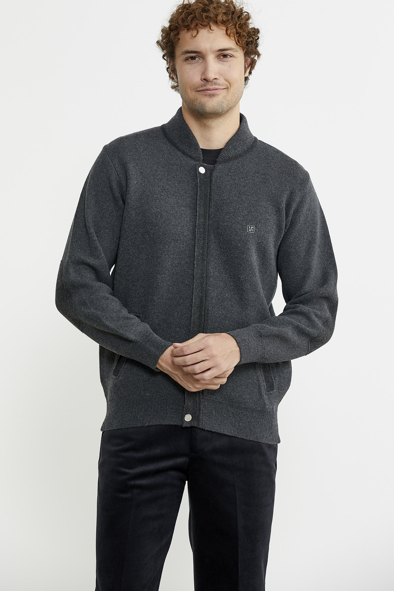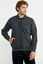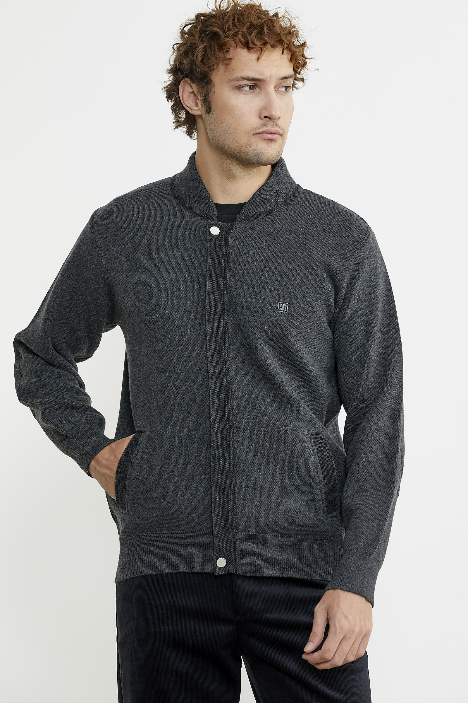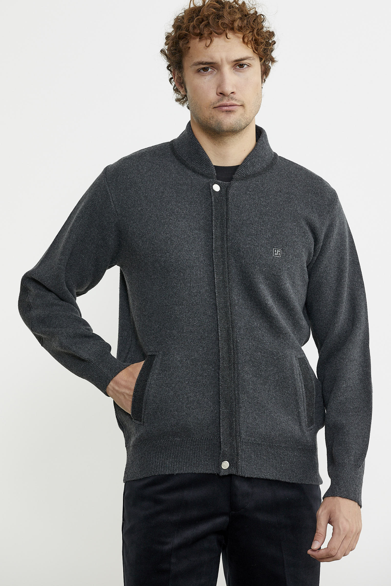 Unlined, front zippered, pocket detailed knit coat. Color variants available on body and sleeves.