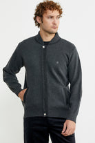 Color Combination Pocket Wool Knitwear Coat - Dark Grey - Black