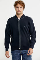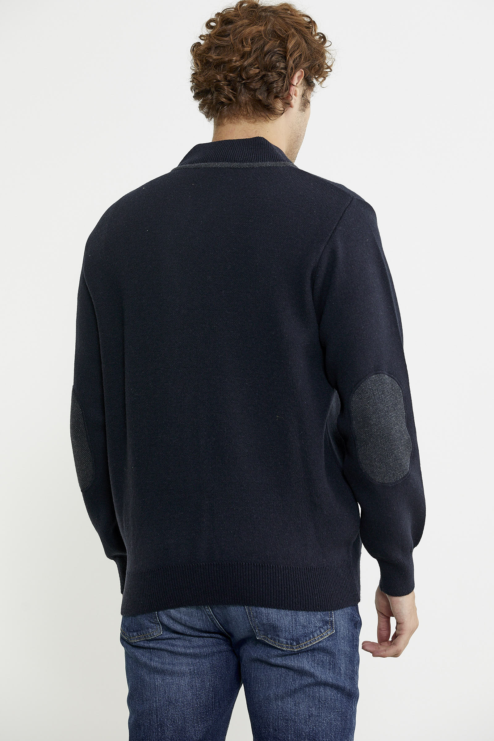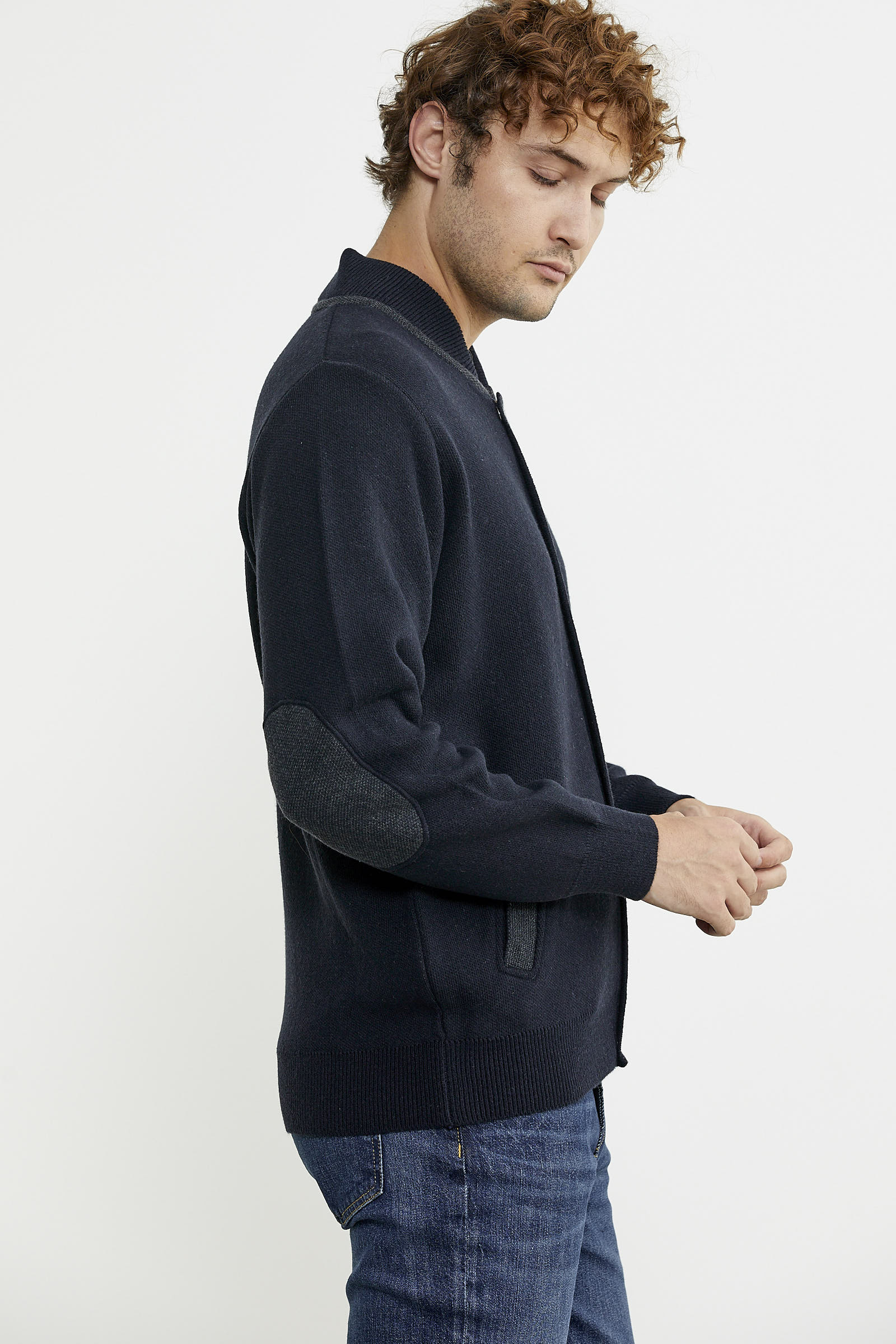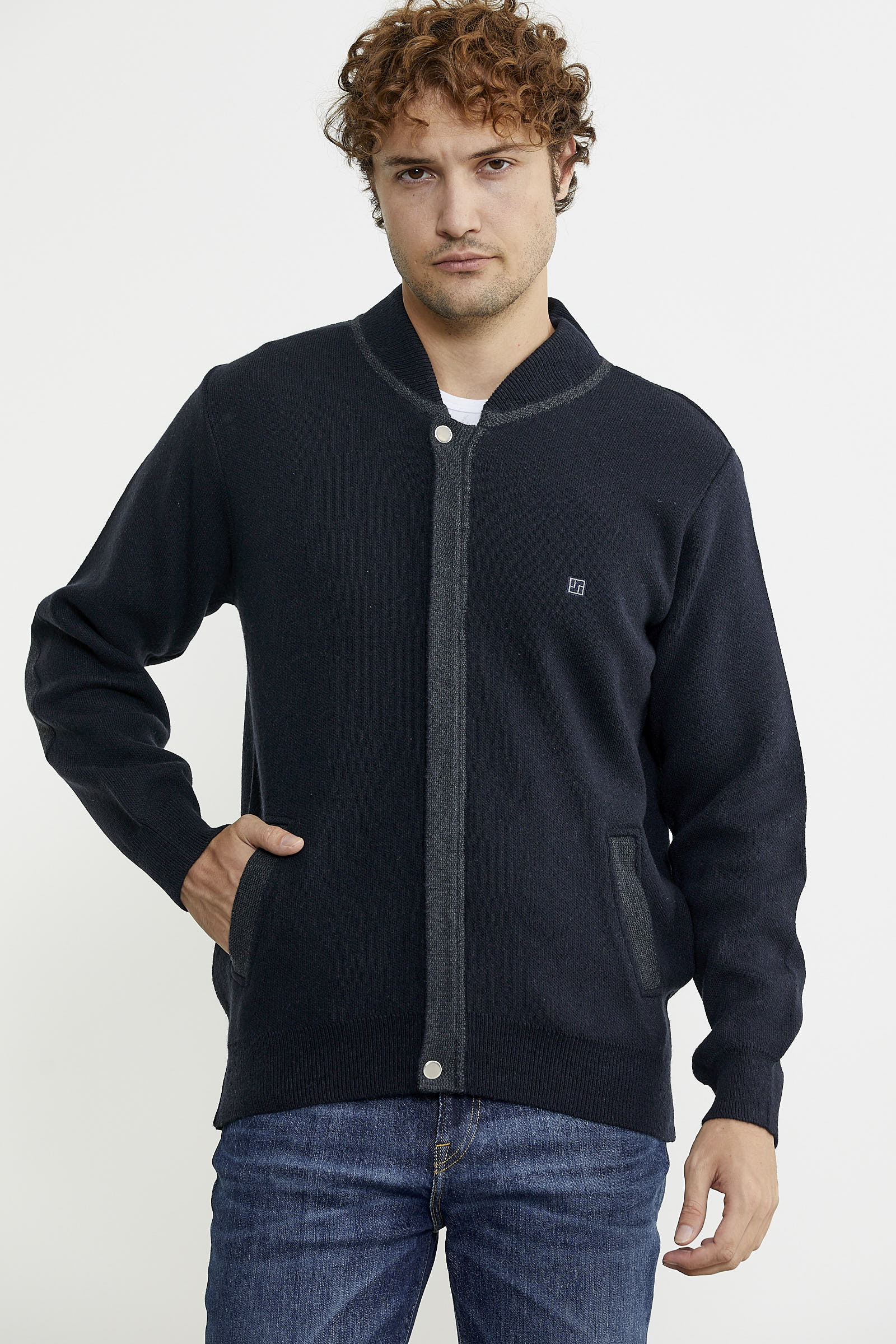 Color Combination Pocket Wool Knitwear Coat - Navy Blue - Dark Grey