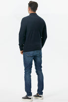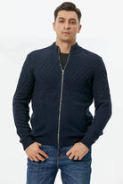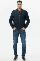 Stand Up Collar Zippered Pocket Knitwear Cardigan - Navy Blue