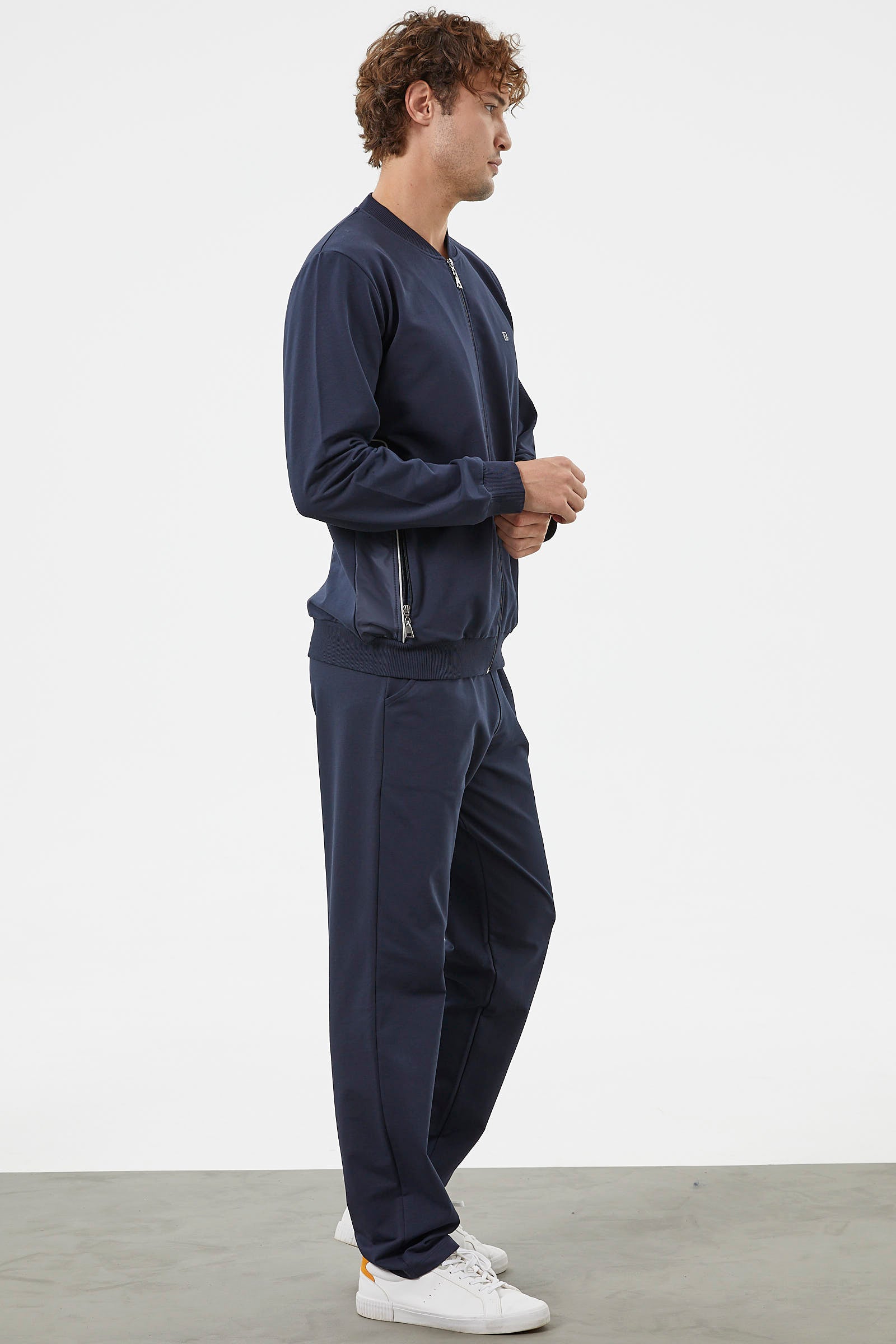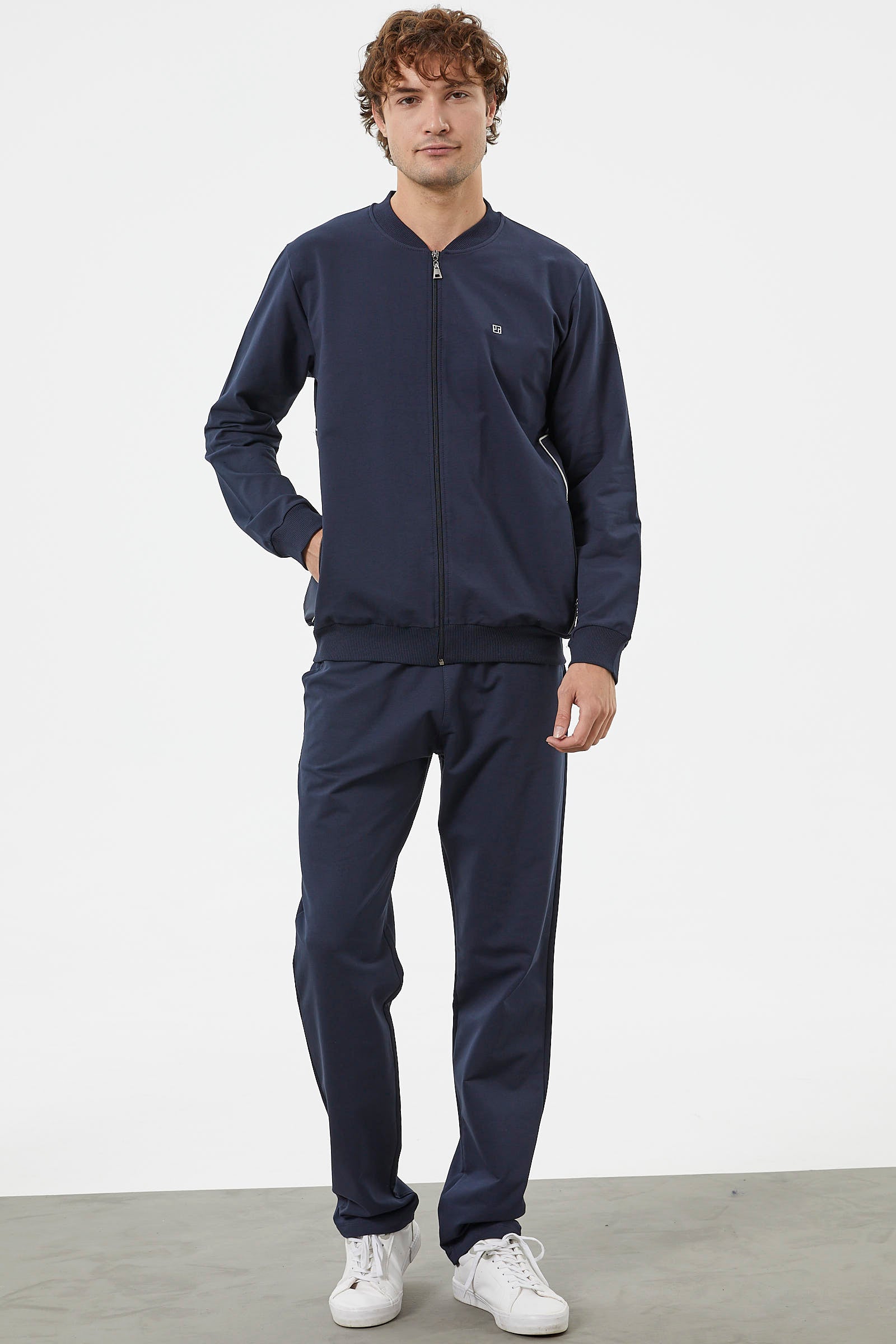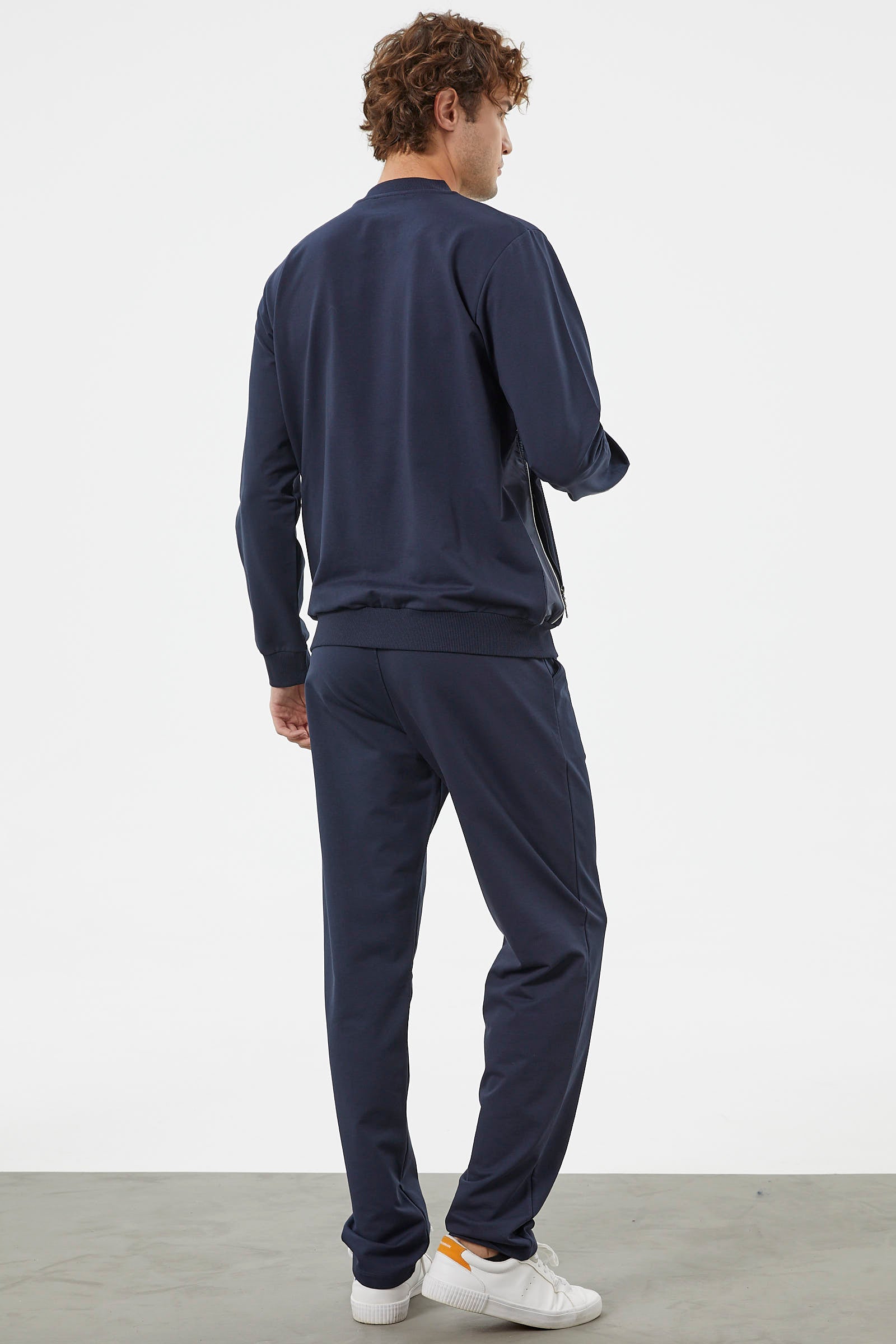 Zipper Detailed Two Color Tracksuit Set - Navy Blue