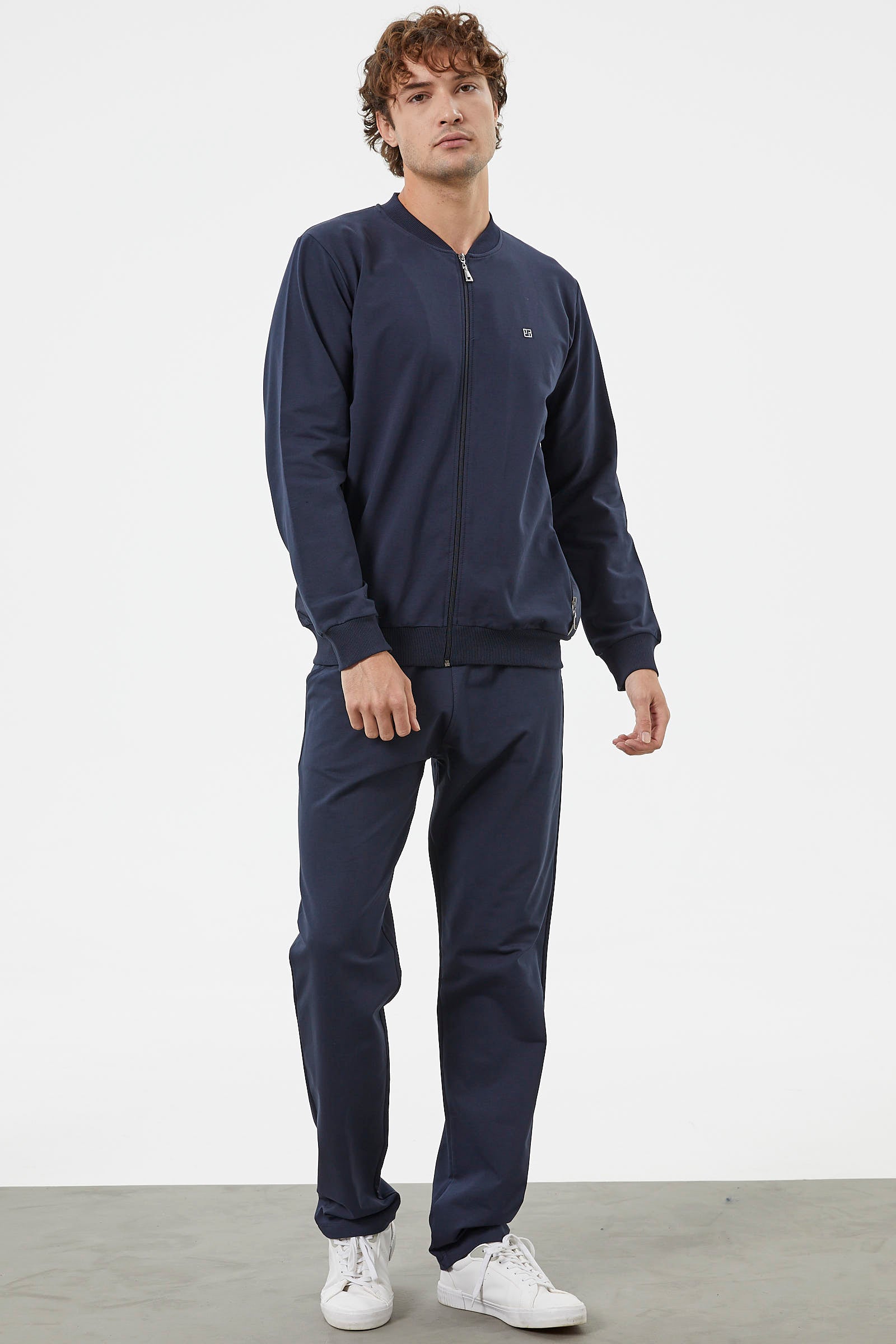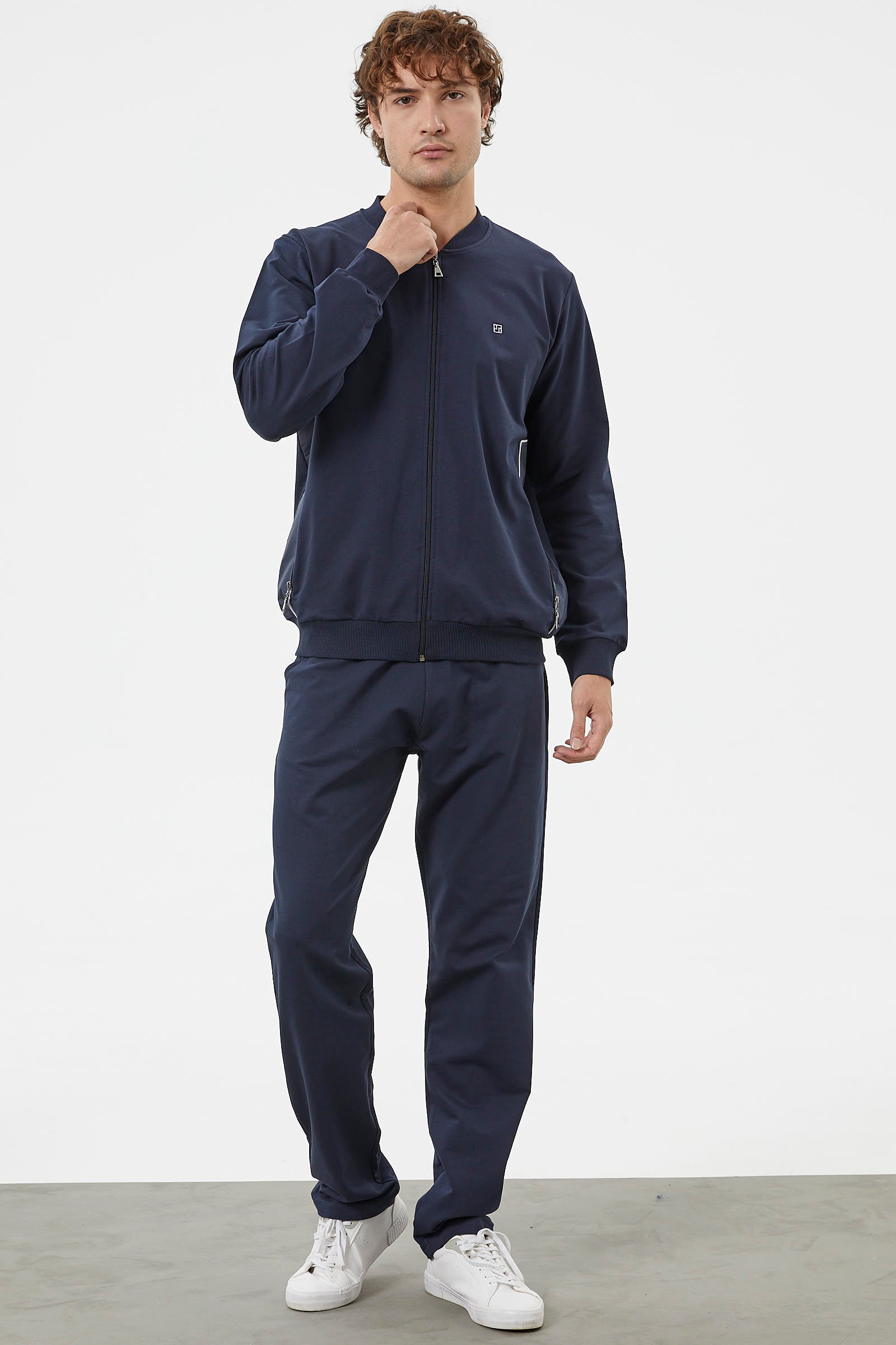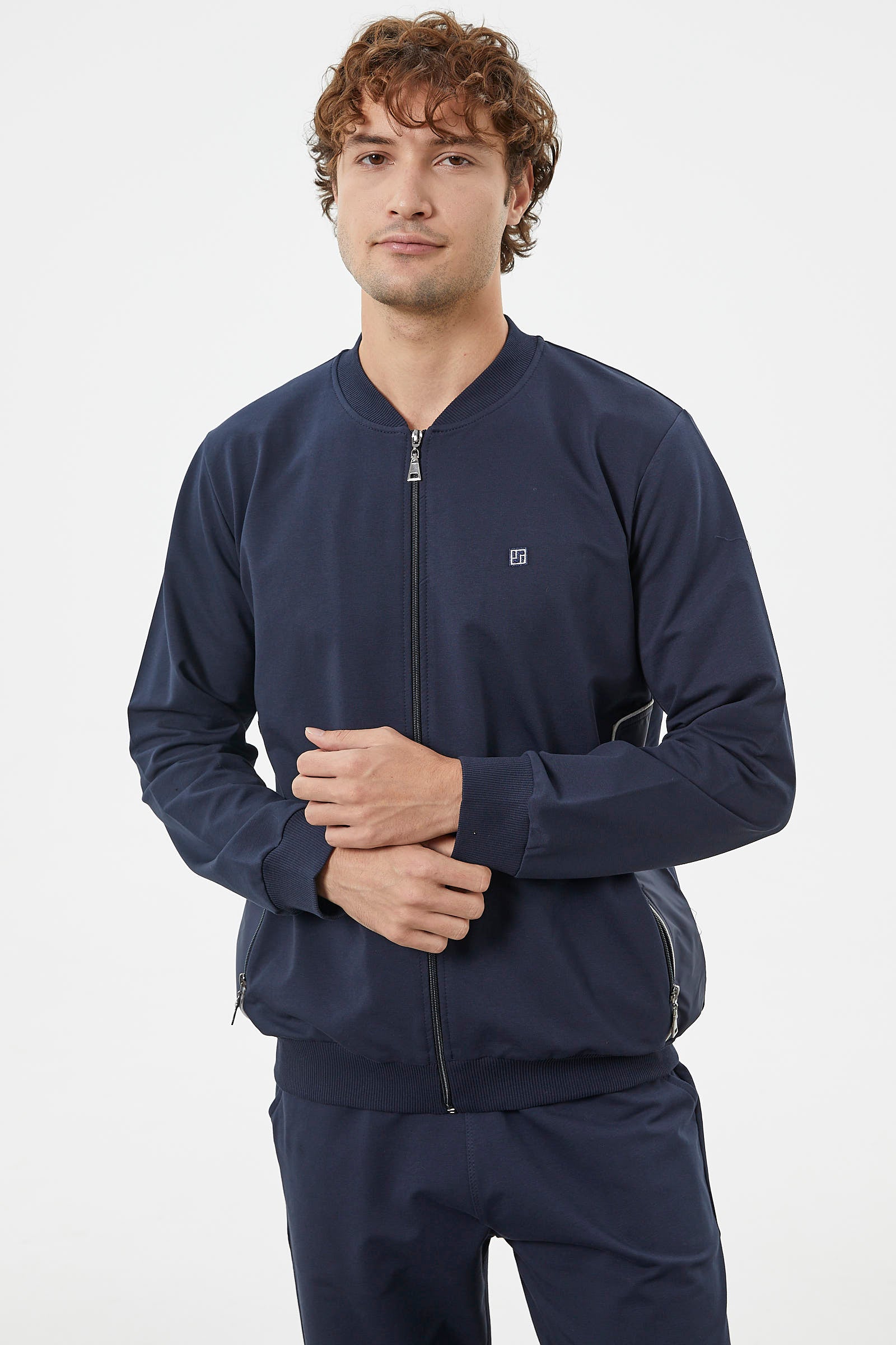 Zipper Detailed Two Color Tracksuit Set - Navy Blue