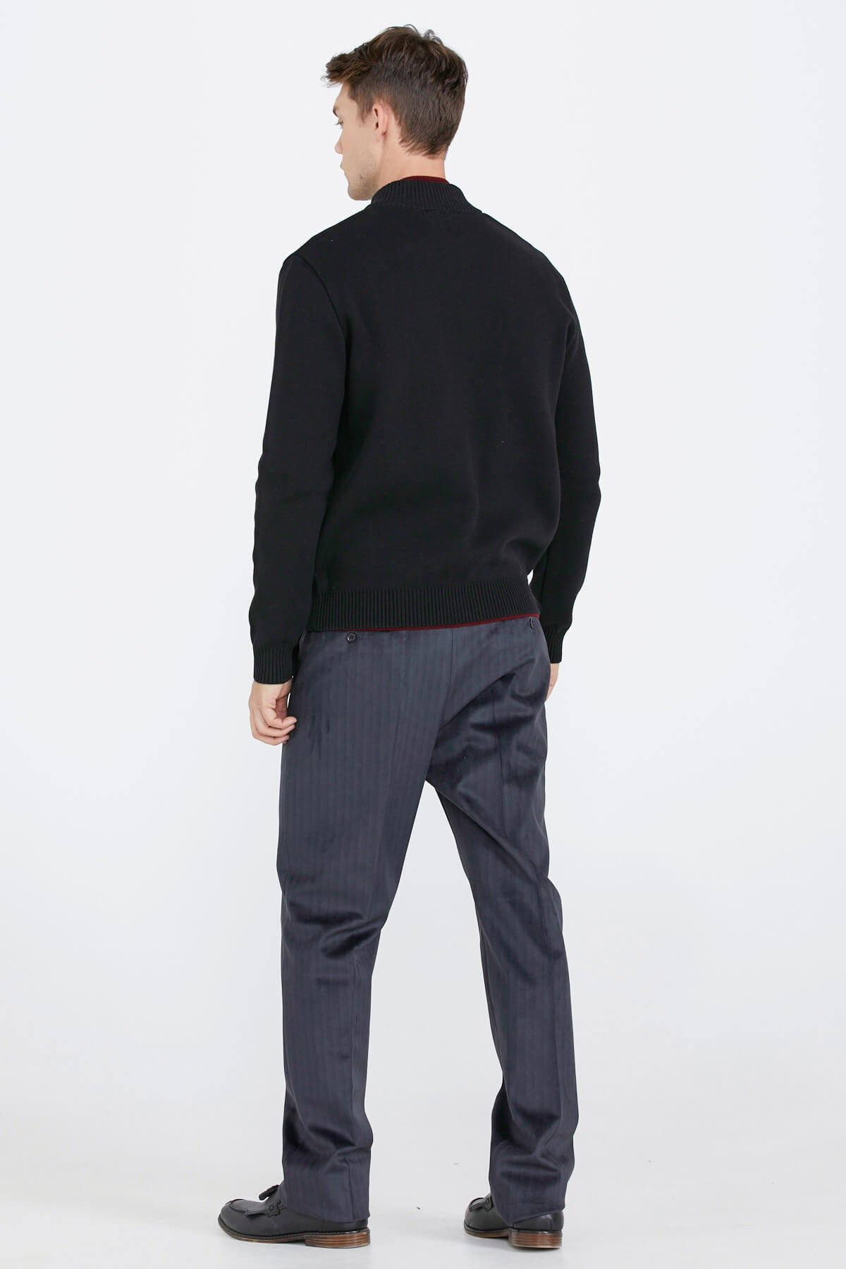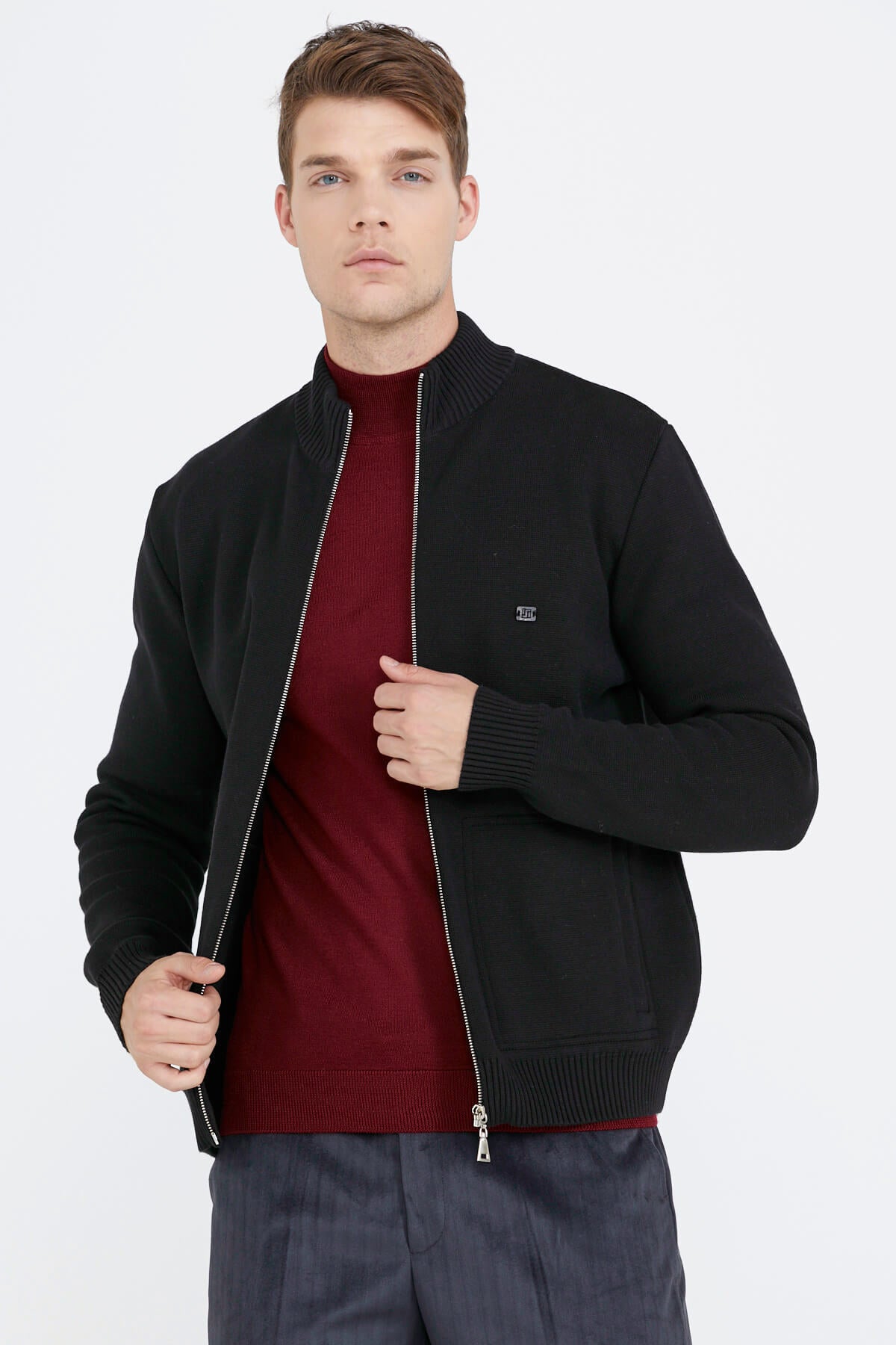 Men's Knitwear Jacket With Embroidery Detailed Pocket - Black