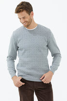 Braided Knitwear Sweater With Suede Garnish - Light Gray