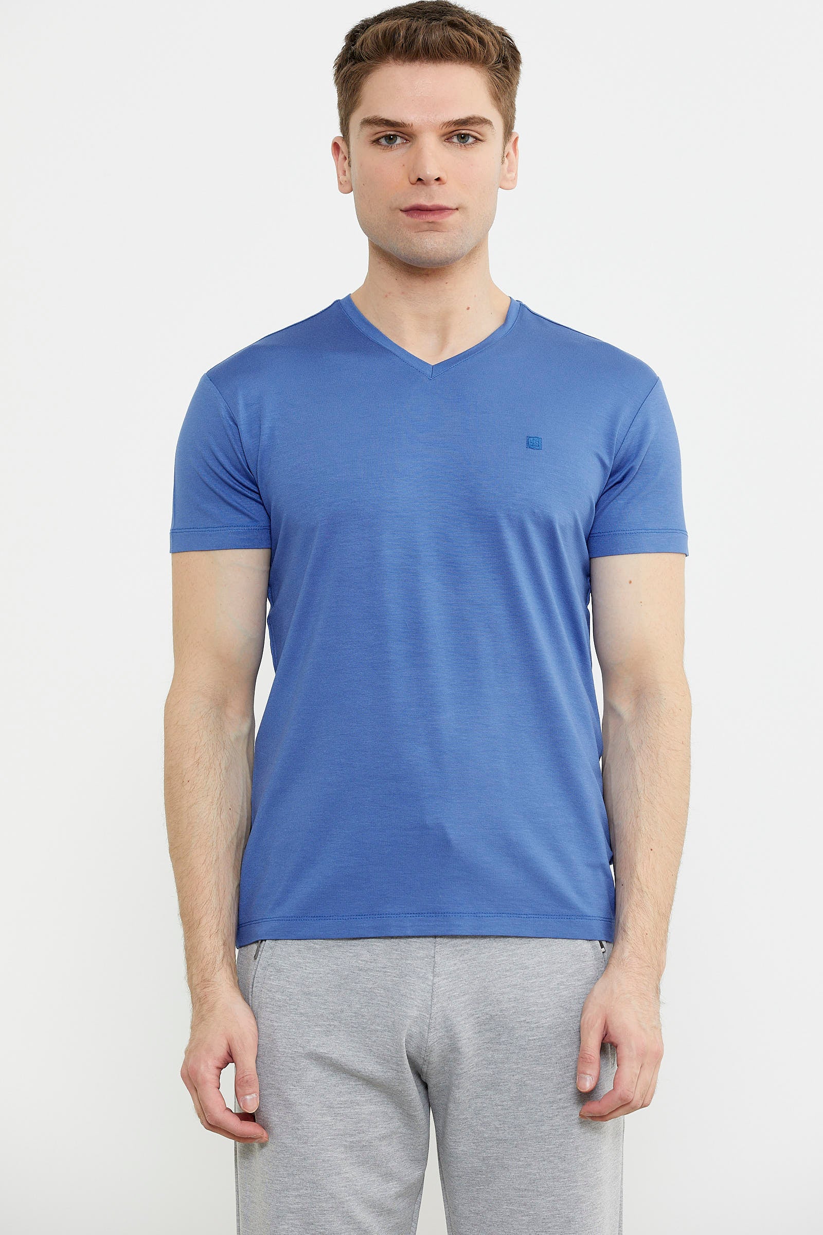 Made from soft combed cotton, T-shirt with a V-neck and straight hem. Slim fit that reveals the lines of the body.