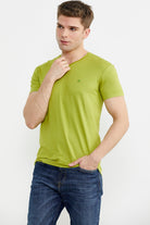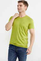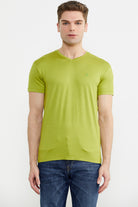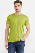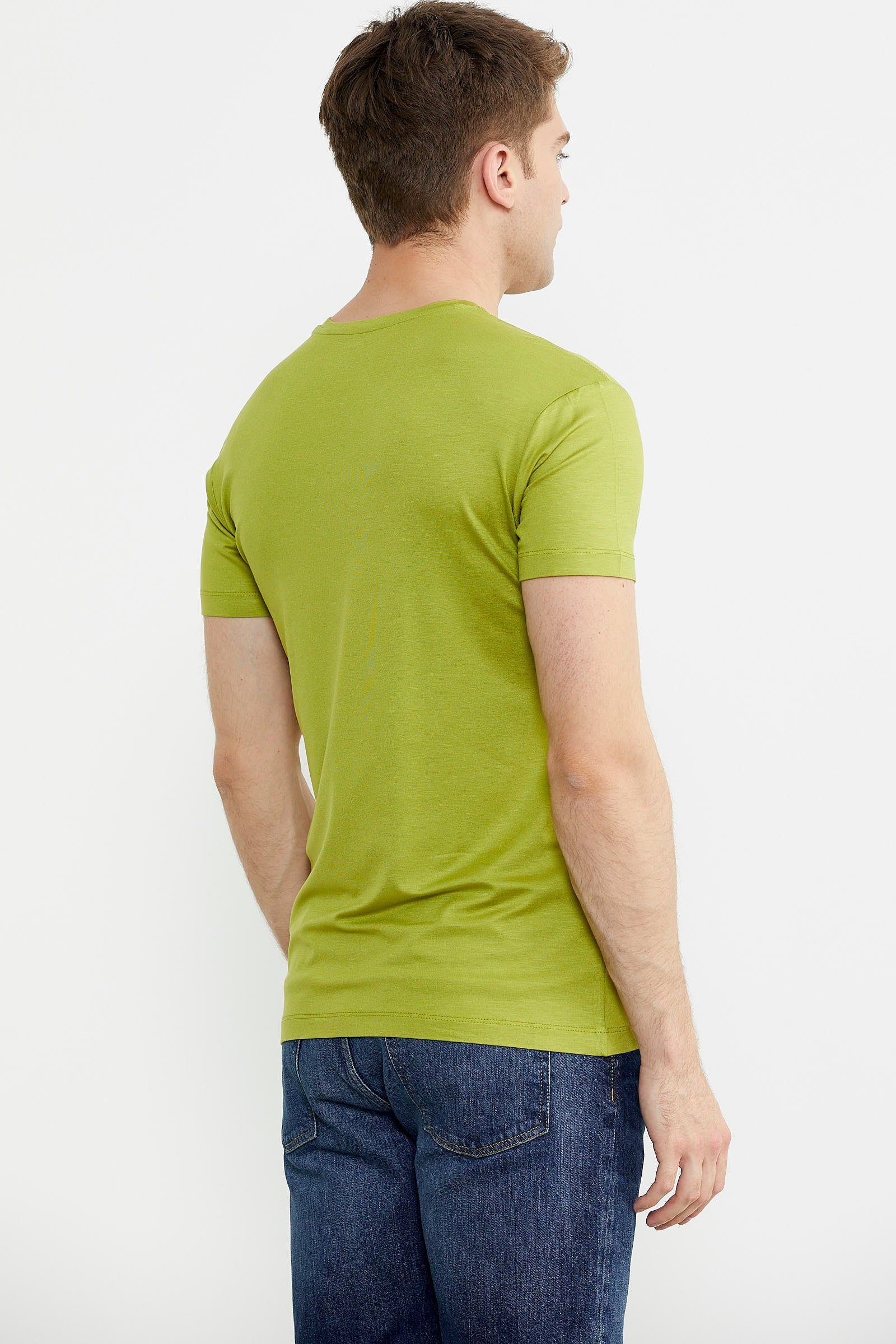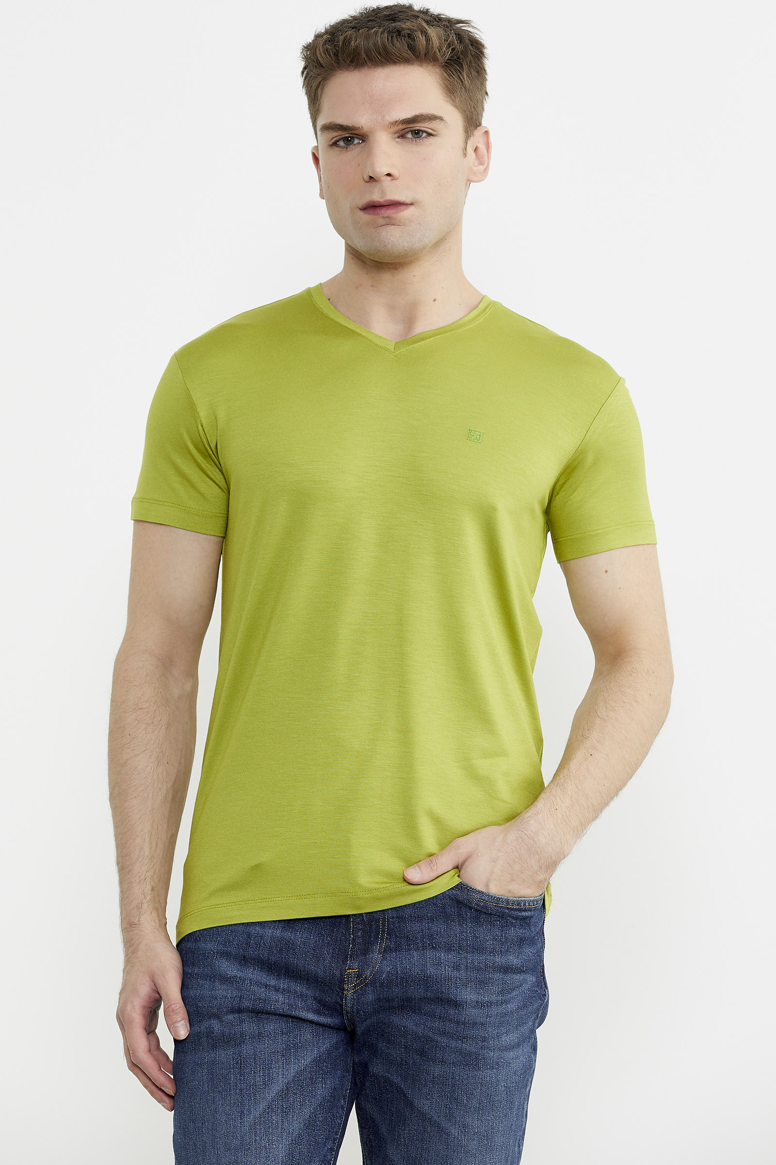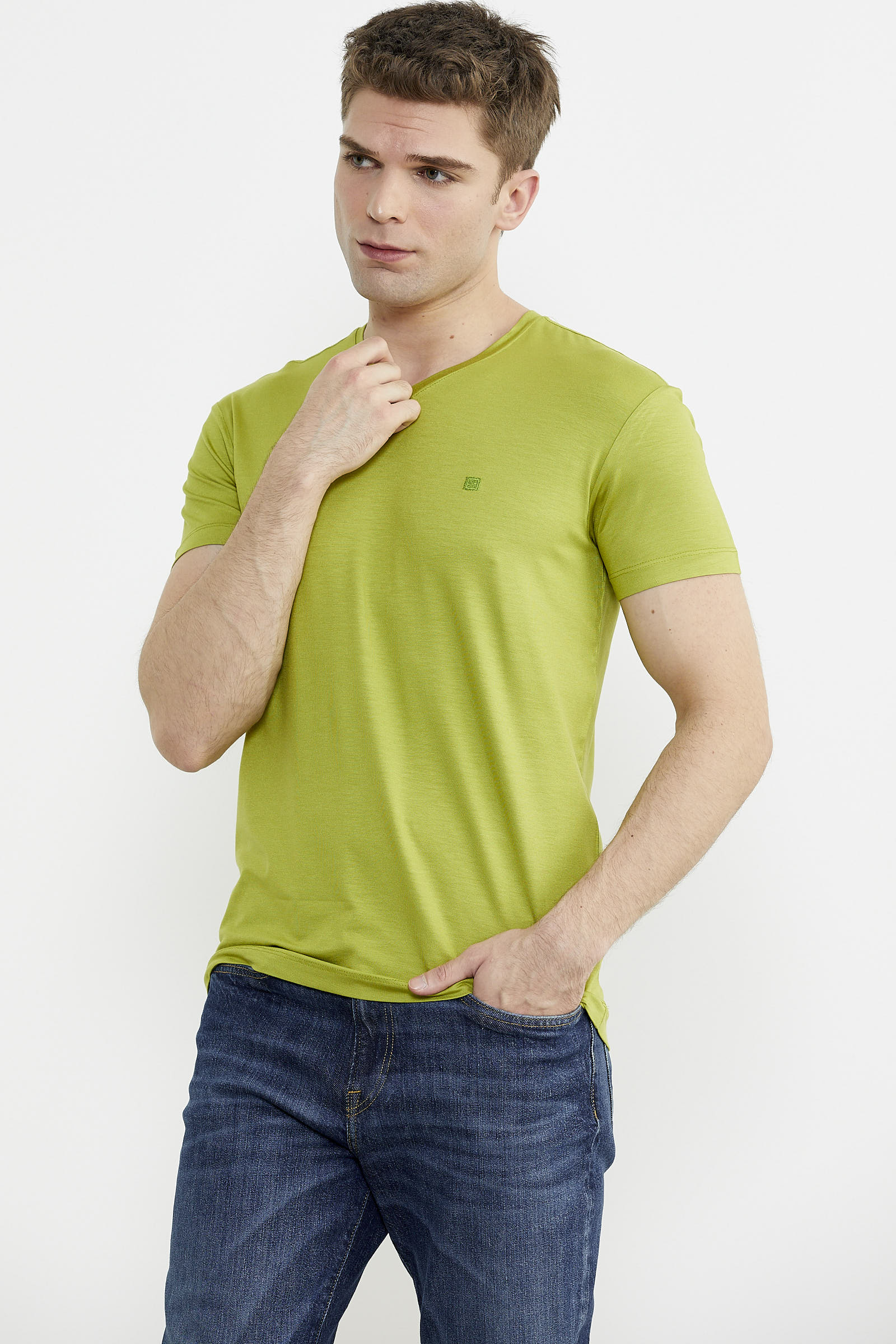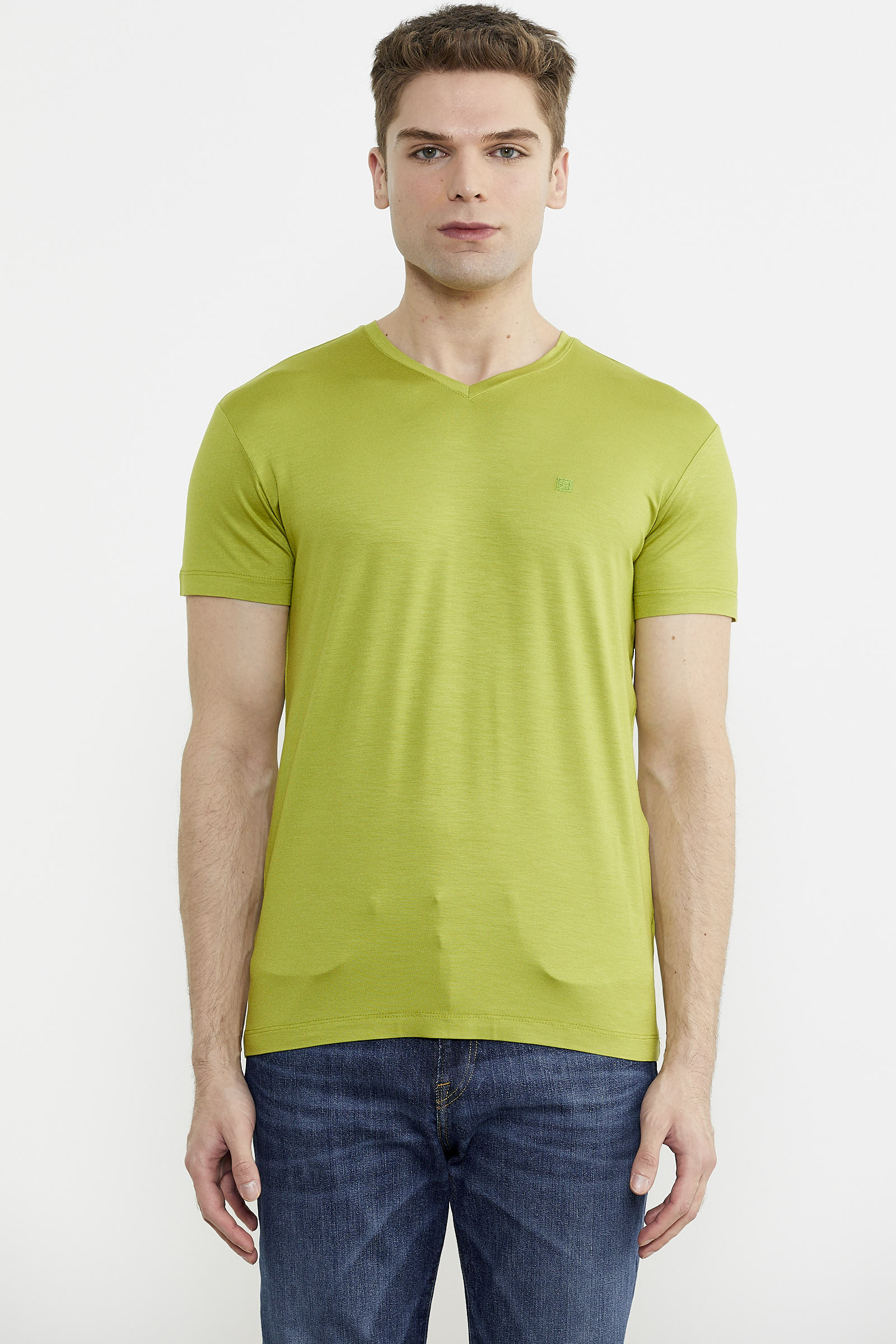 Made from soft combed cotton, T-shirt with a V-neck and straight hem. Slim fit that reveals the lines of the body.