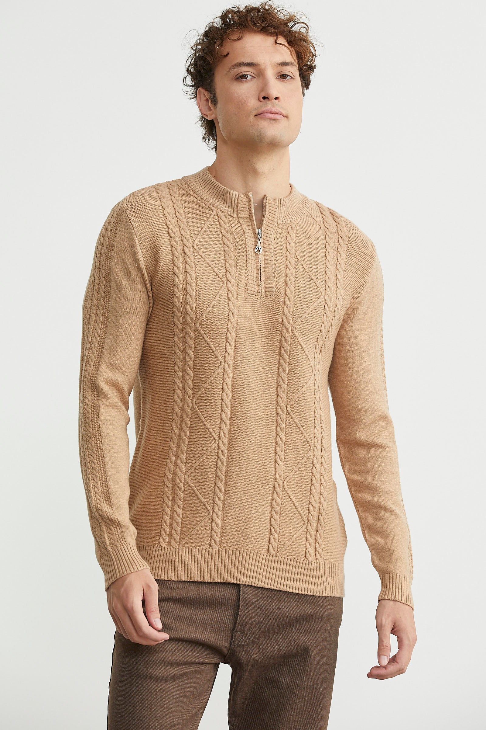 Polo collar sweaters, on the other hand, evoke the classic style. When pocket details are added to polo-neck sweaters, these sweaters get a more sporty look. Sweaters with zippered collars can adapt to any style. Men's sweaters with zipper details on the collar do not allow wearing a shirt inside, as they cover the throat half or completely. Buttoned sweaters, on the other hand, are usually on a polo-like collar, and when you wear a shirt inside them, they do not look stylish because they will become bulky. Therefore, they are more stylish when worn alone. Turtleneck, half neck and turtleneck sweaters are very noble pieces that are always suitable for every style.