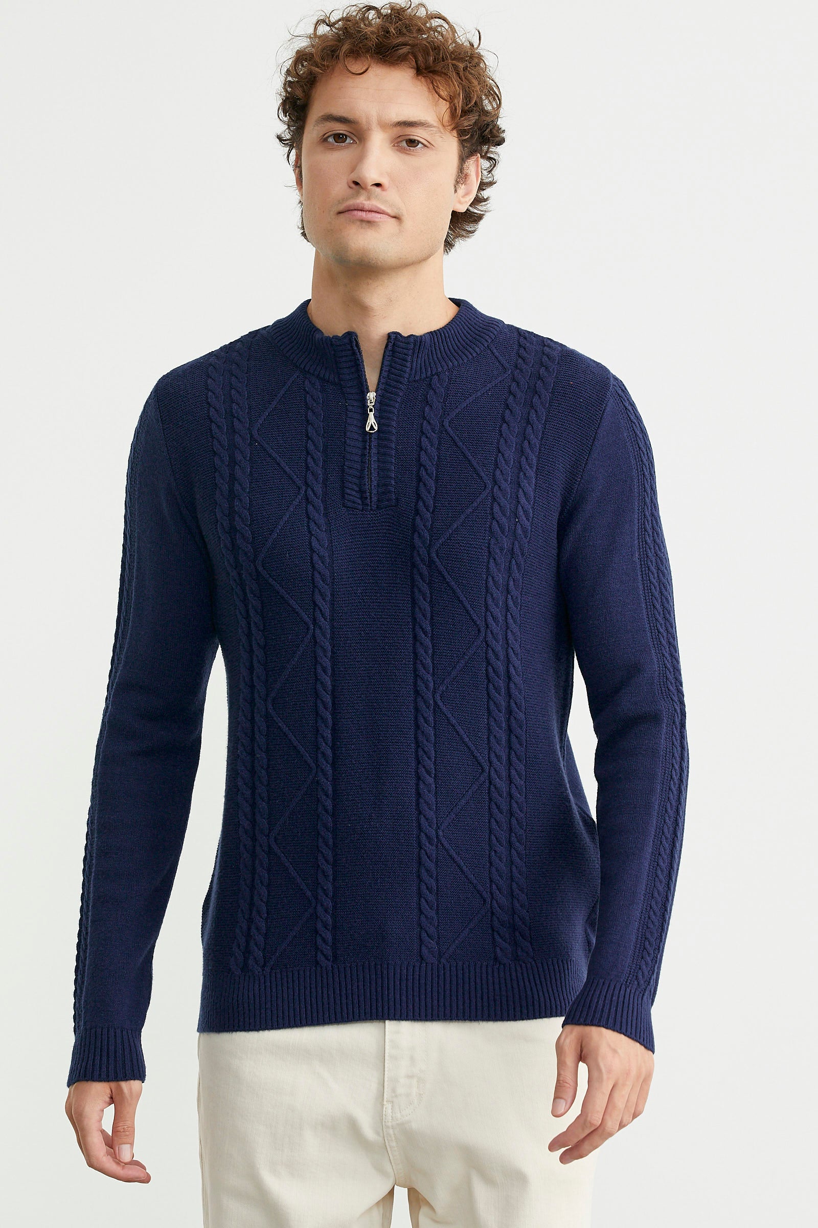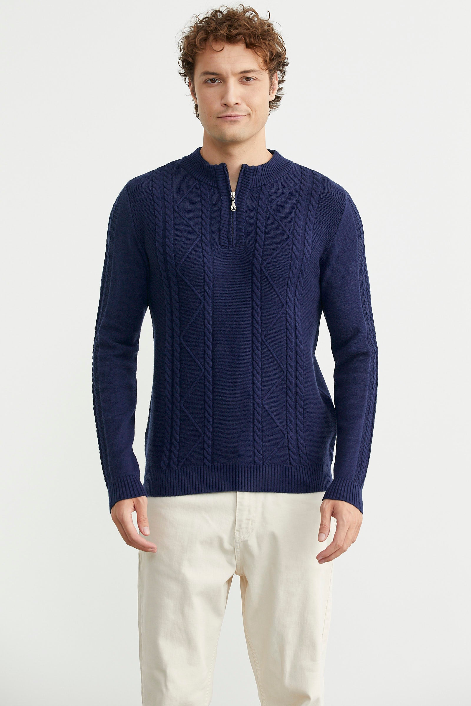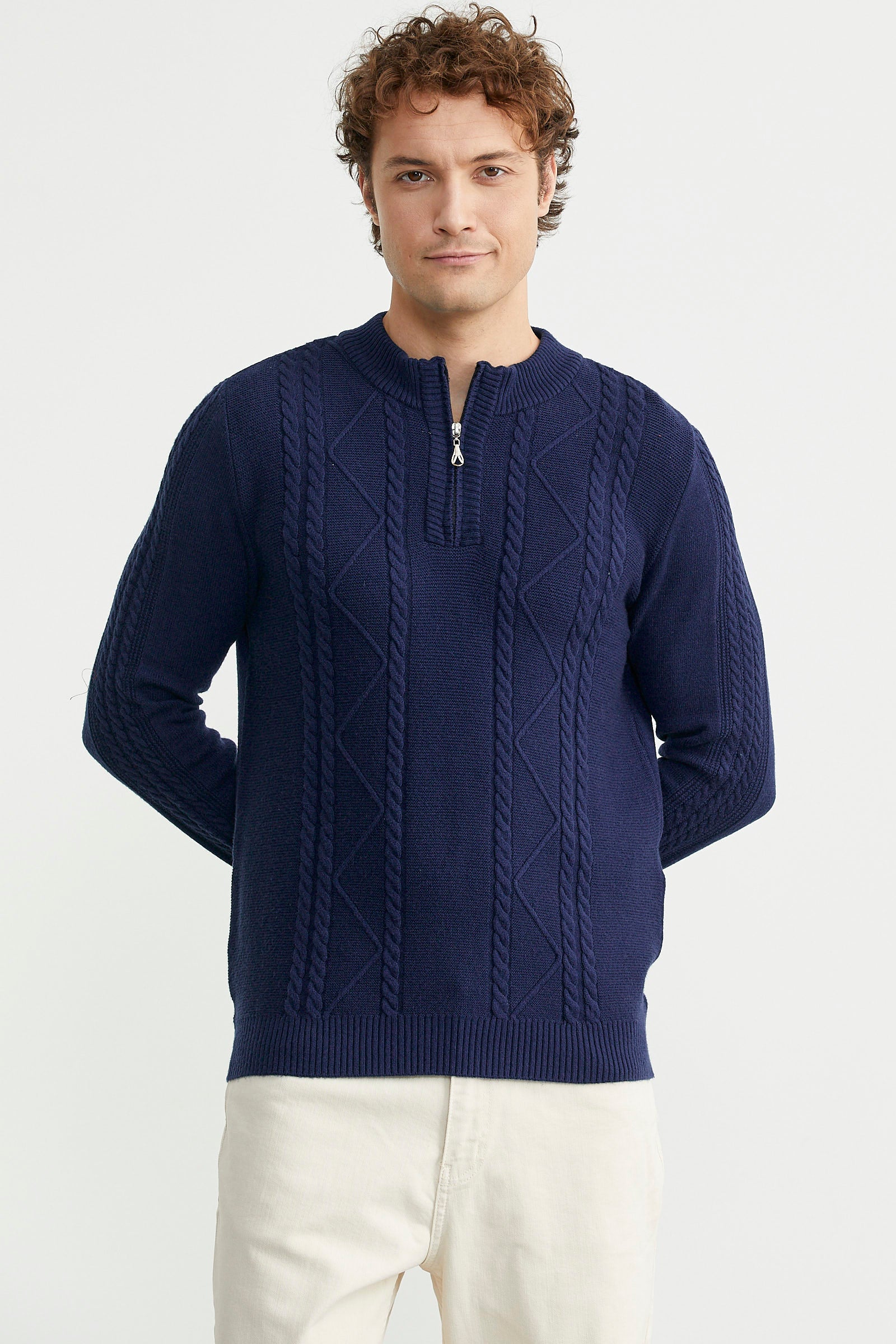 Polo collar sweaters, on the other hand, evoke the classic style. When pocket details are added to polo-neck sweaters, these sweaters get a more sporty look. Sweaters with zippered collars can adapt to any style. Men's sweaters with zipper details on the collar do not allow wearing a shirt inside, as they cover the throat half or completely. Buttoned sweaters, on the other hand, are usually on a polo-like collar, and when you wear a shirt inside them, they do not look stylish because they will become bulky. Therefore, they are more stylish when worn alone. Turtleneck, half neck and turtleneck sweaters are very noble pieces that are always suitable for every style.