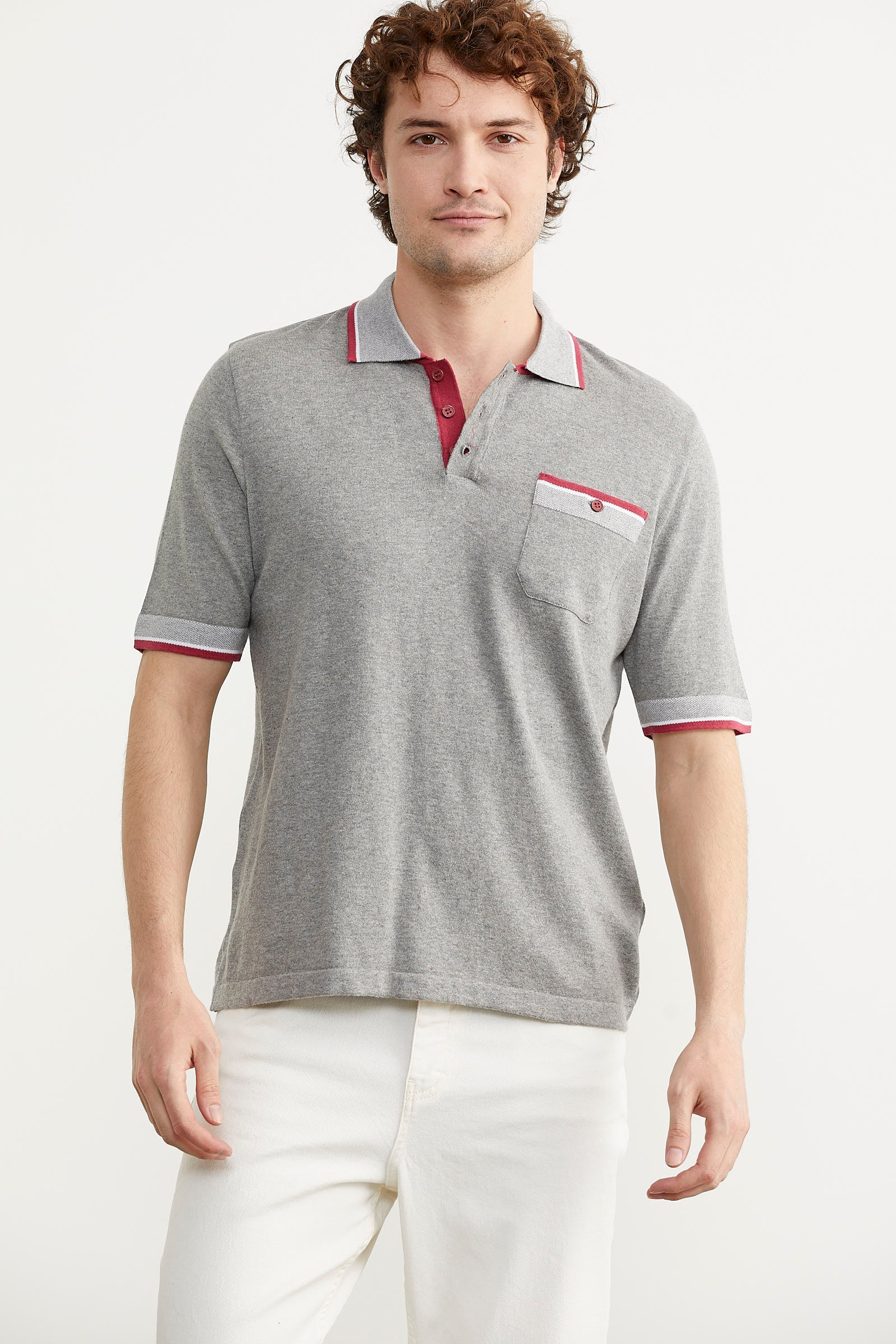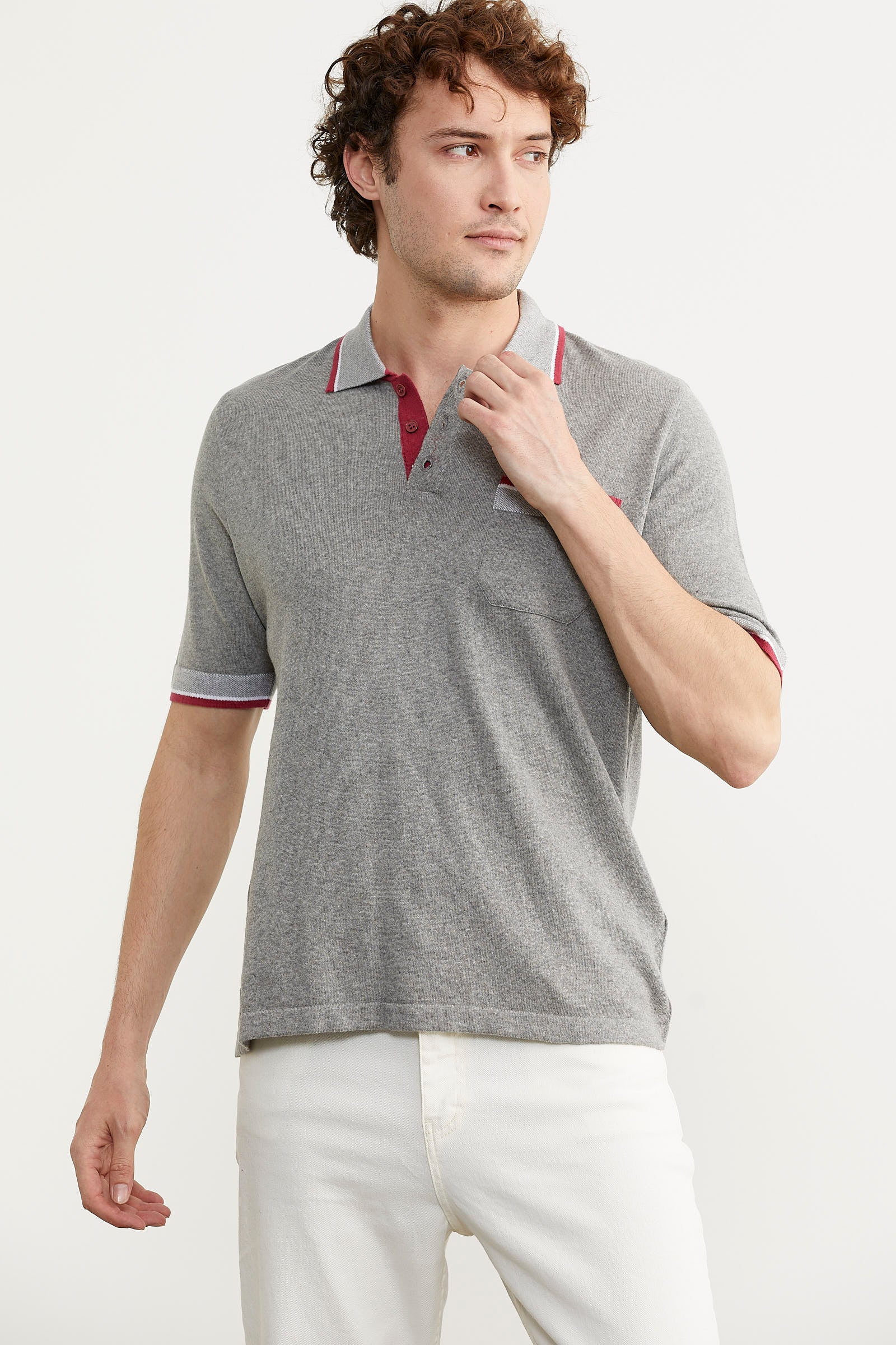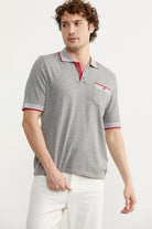 Color Combination Pocket Cotton Knit T-Shirt - Gray