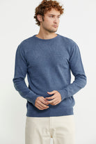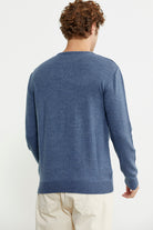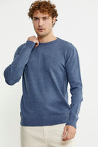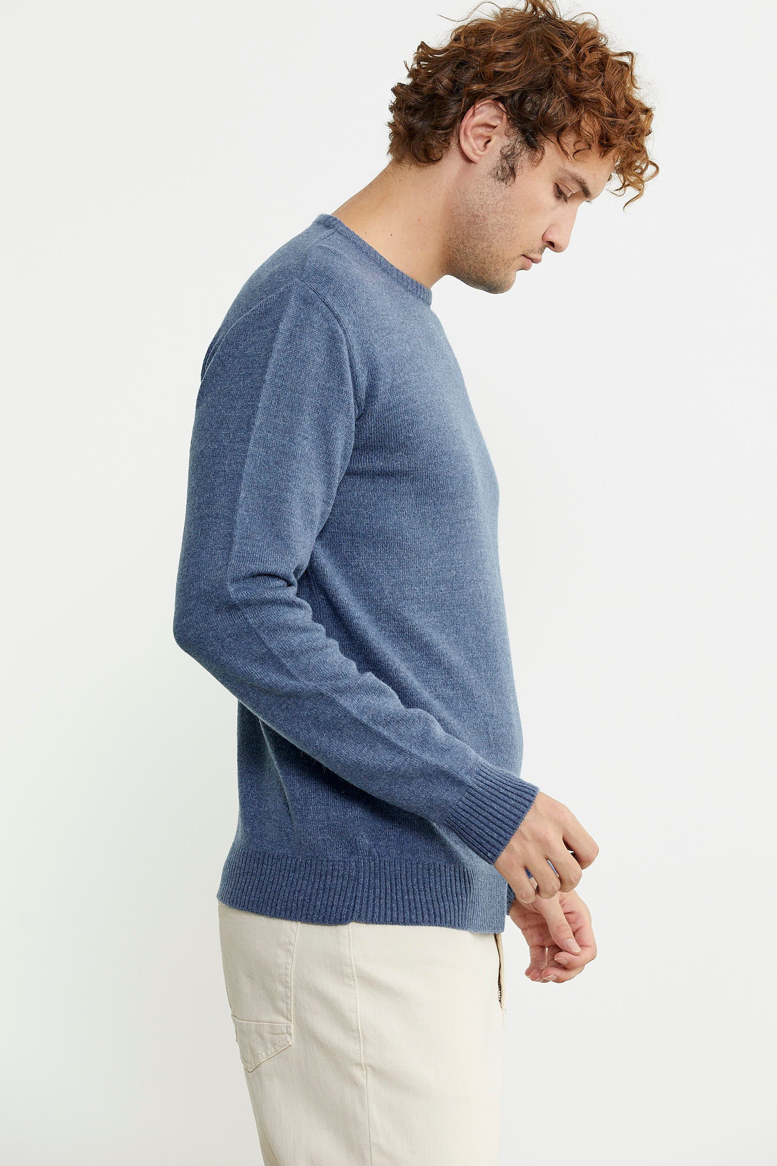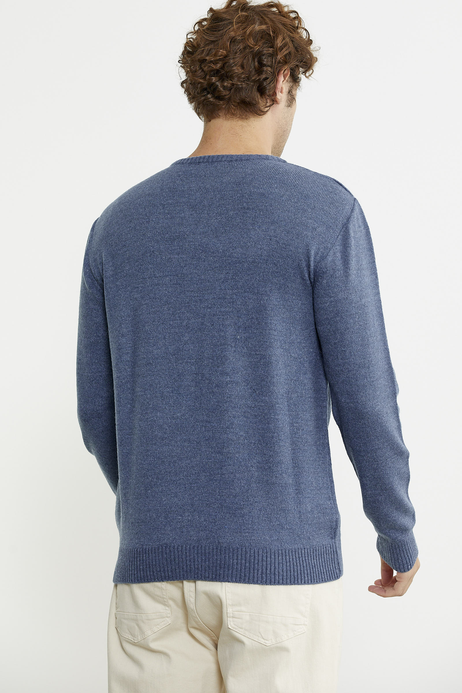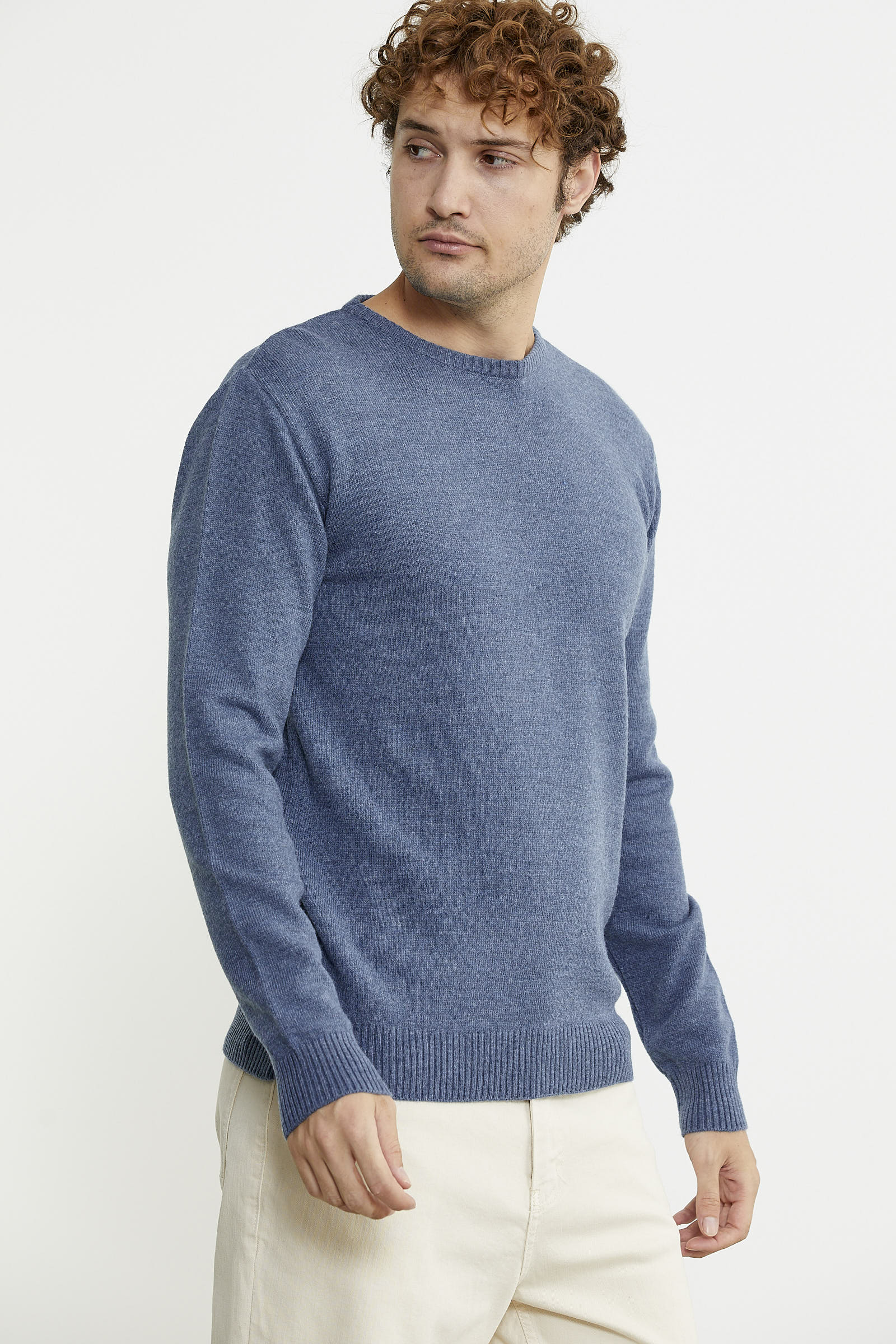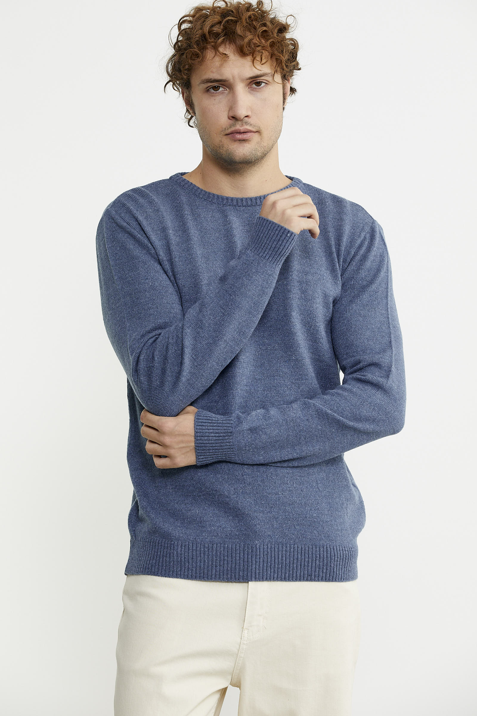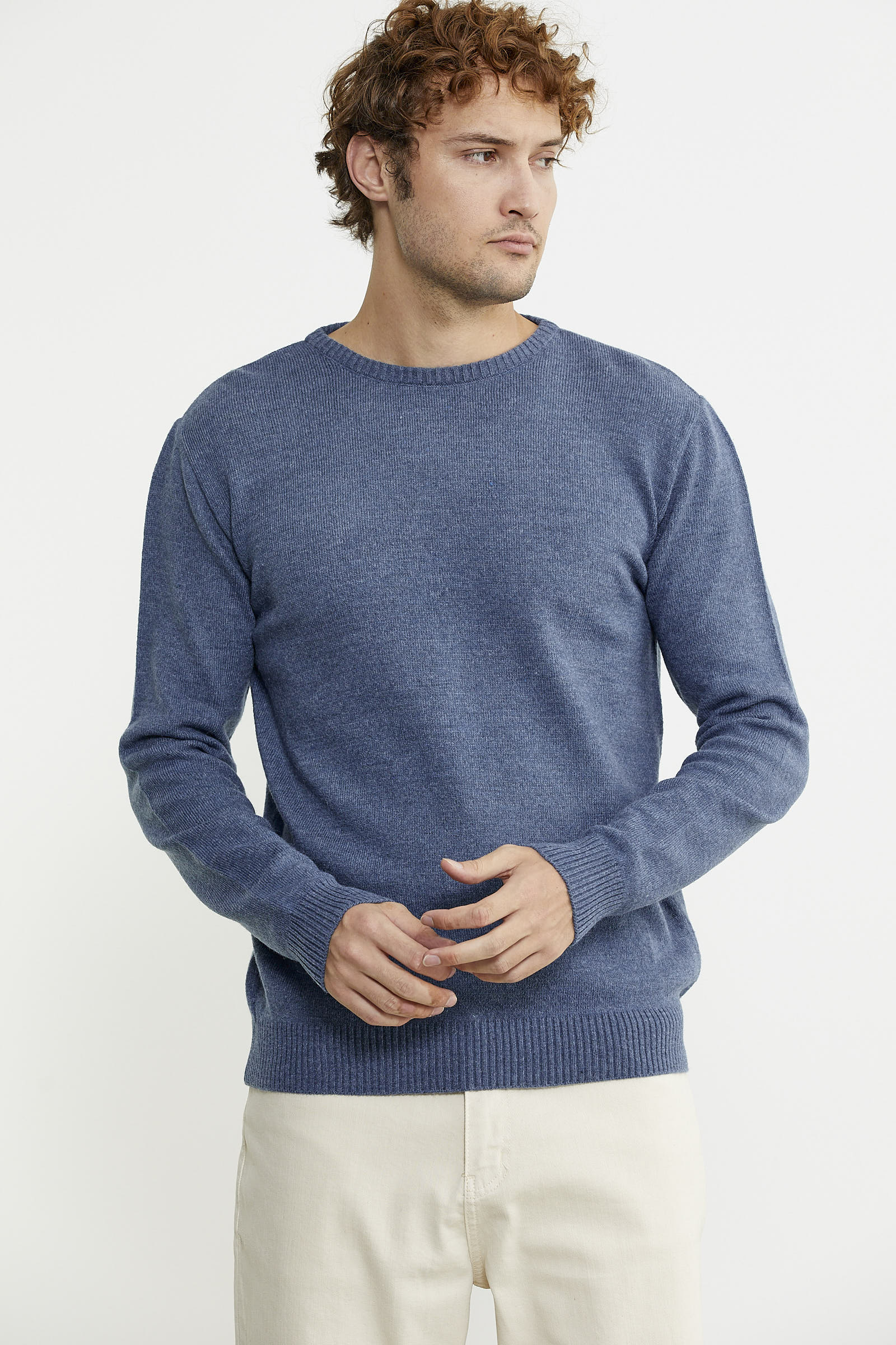 A comfortable, thick, basic knit sweater. Soft texture, ribbed hem and cuffs.