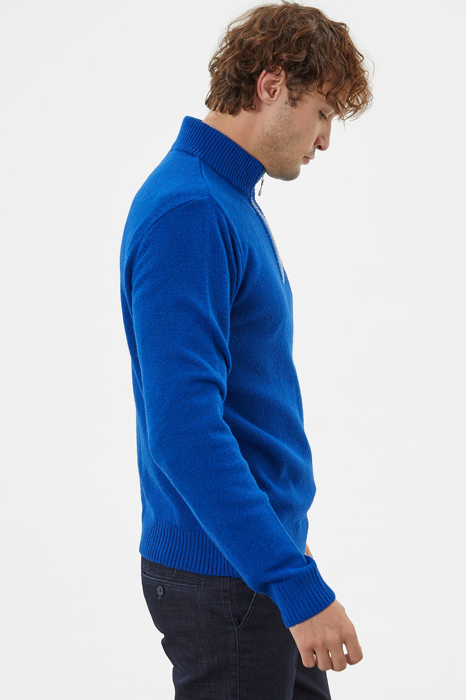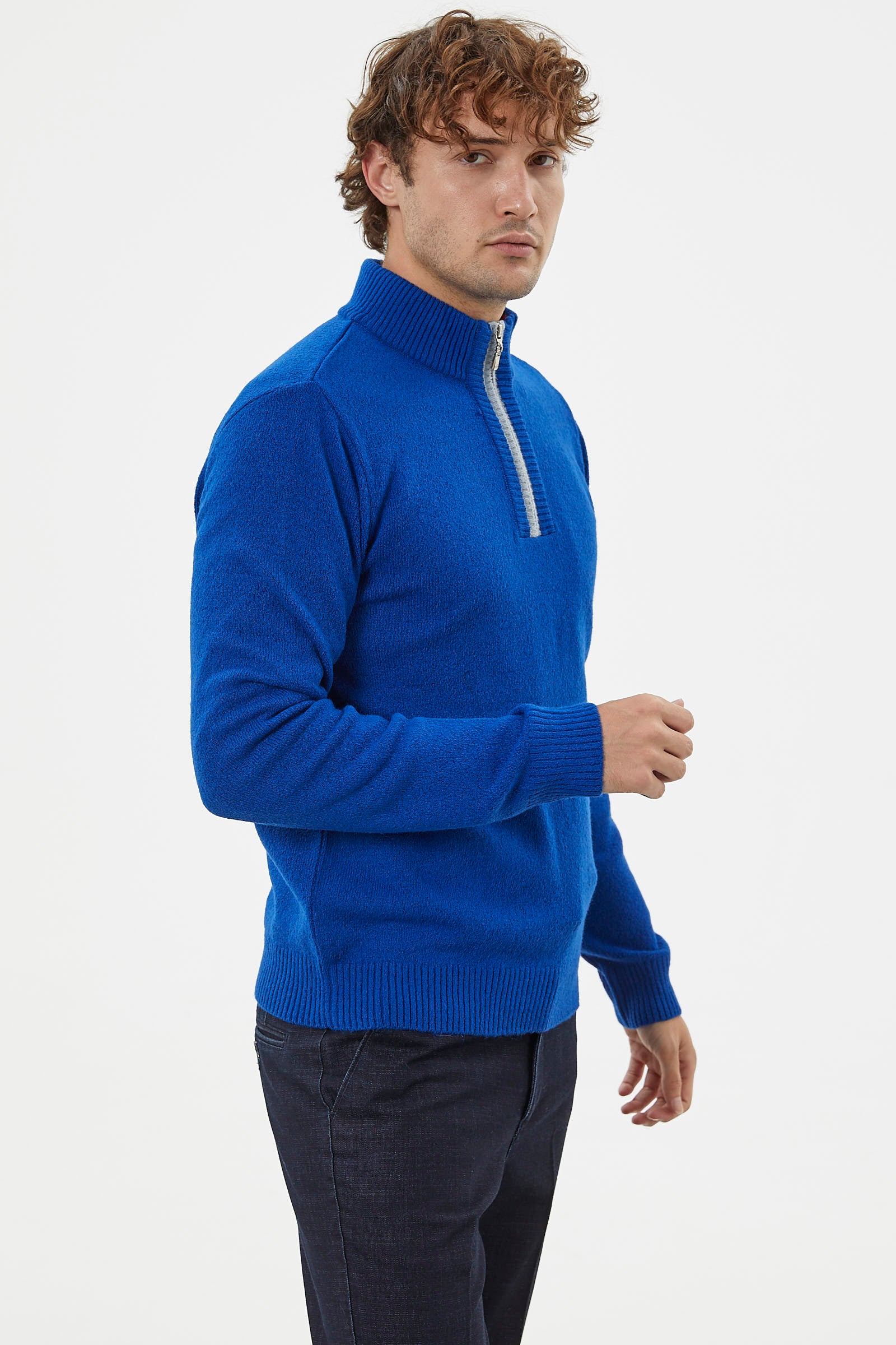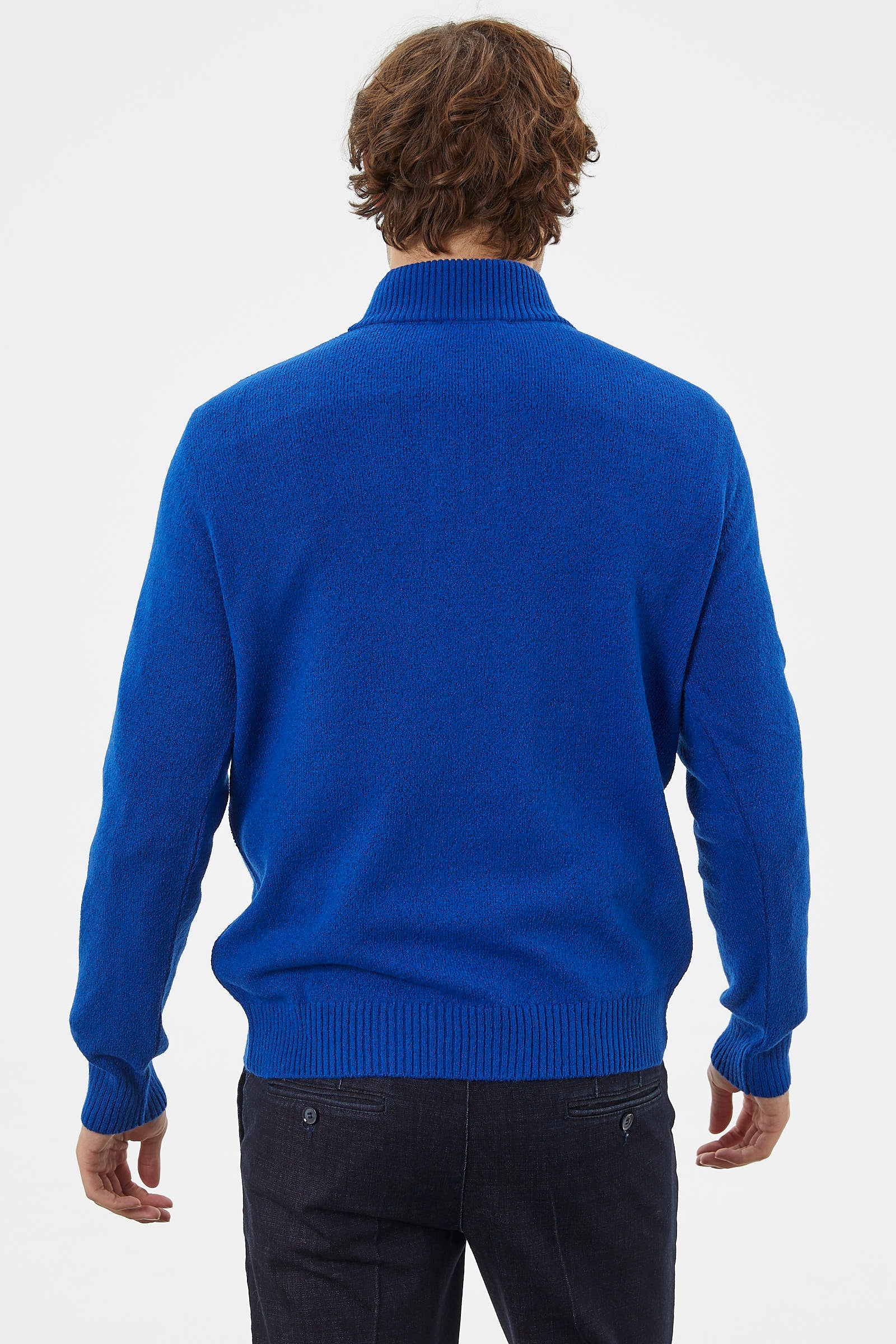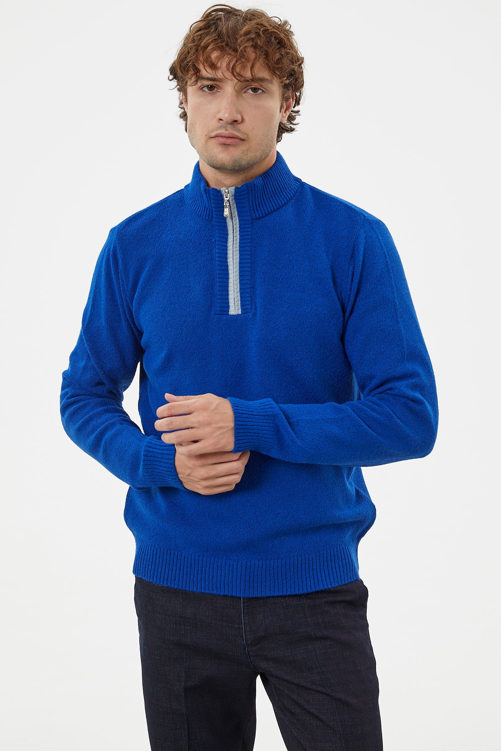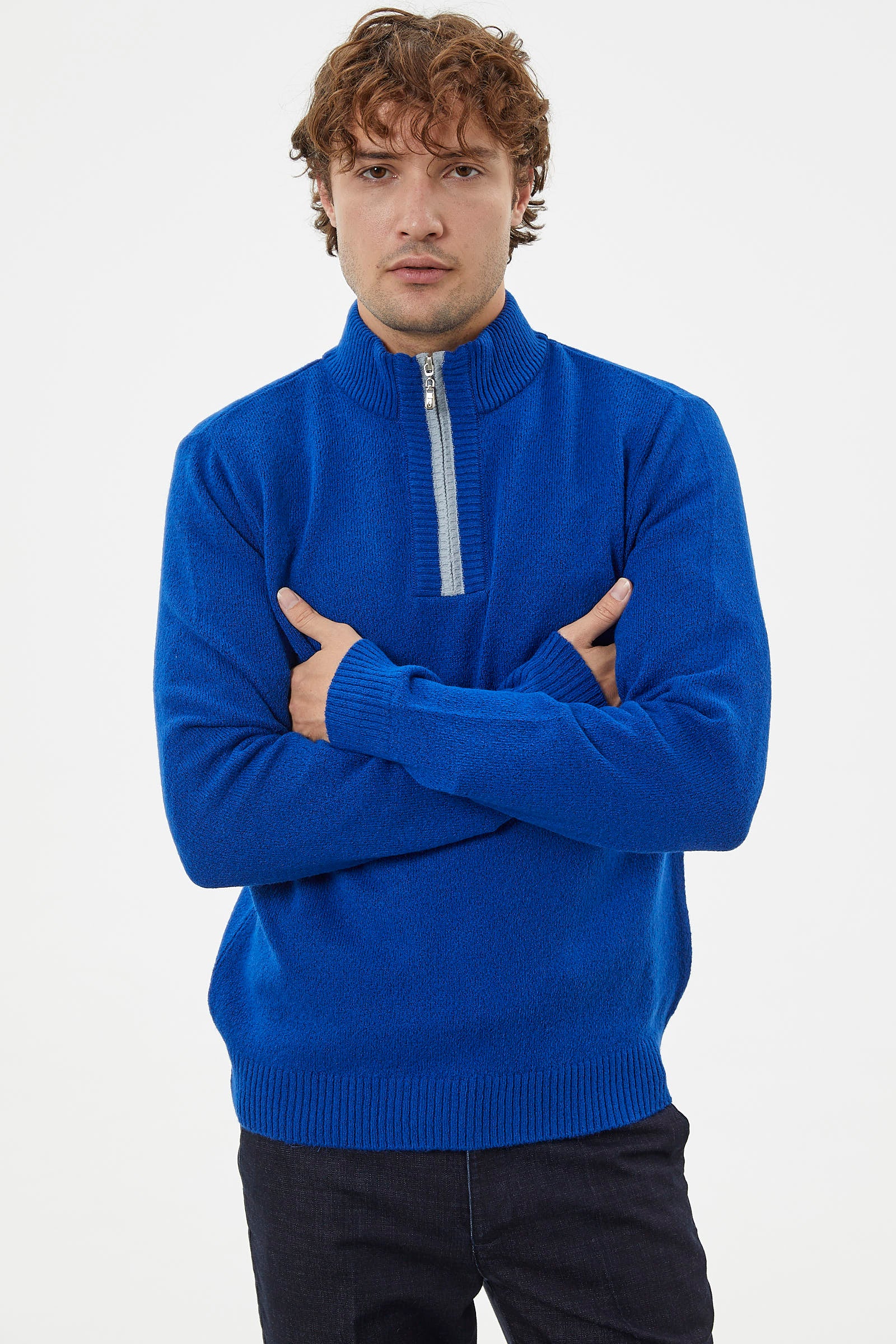The knitwear sweater, which will allow you to create an effortless and modern look with its flexible texture and a stand-up collar with zipper detail, will be an indispensable part of your daily use.