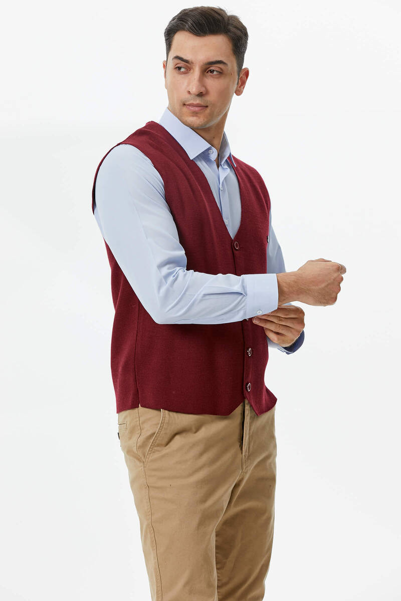 Classic Knitwear Buttoned Knitwear Vest - Claret Red