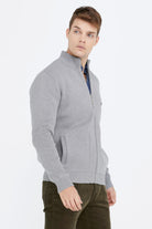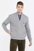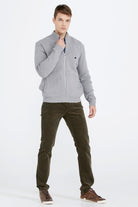 Men's Knitwear Jacket With Embroidery Detailed Pocket - Light Gray