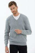 Braided Knitwear Sweater With Suede Garnish - Light Gray