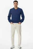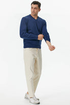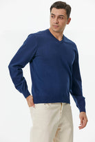 It offers comfort with its V-neck, long sleeves, cuffs, hem and neckline with a thin rib-knit design, and its soft cotton structure.