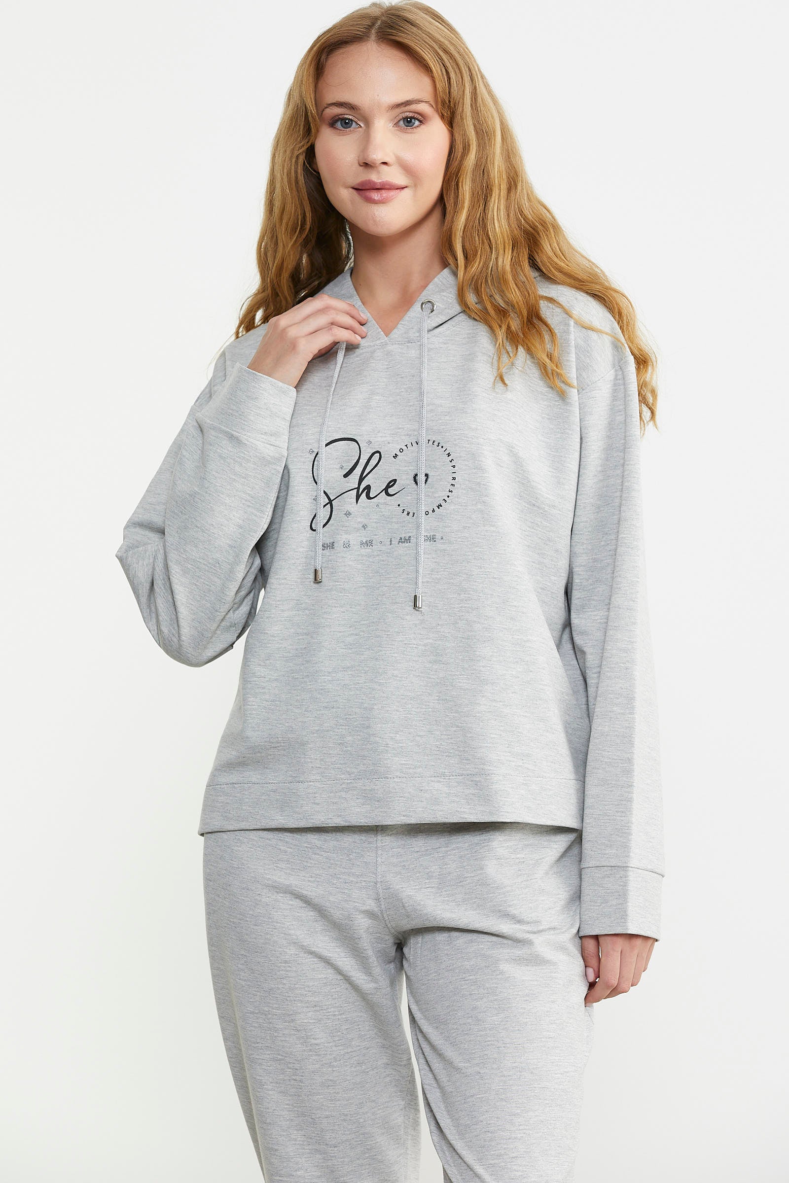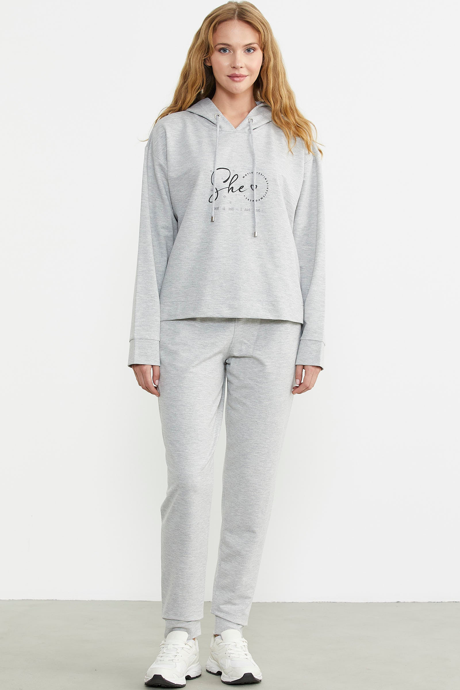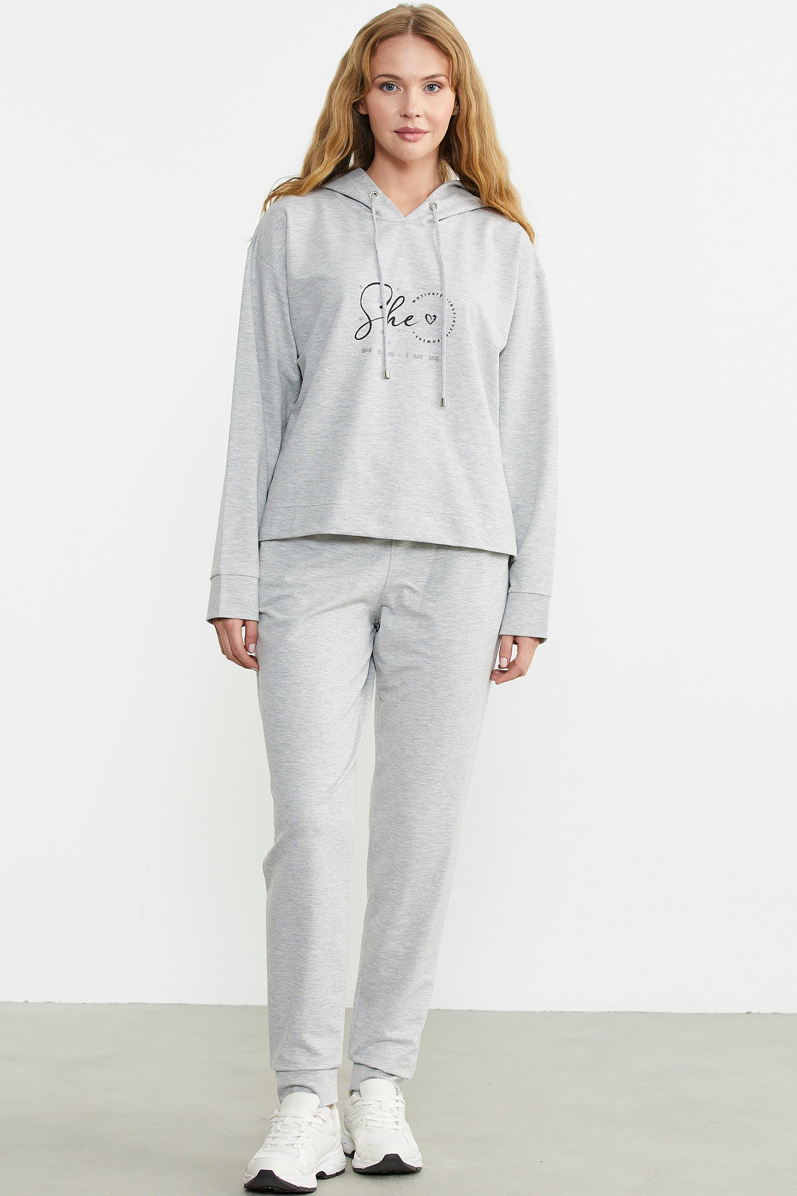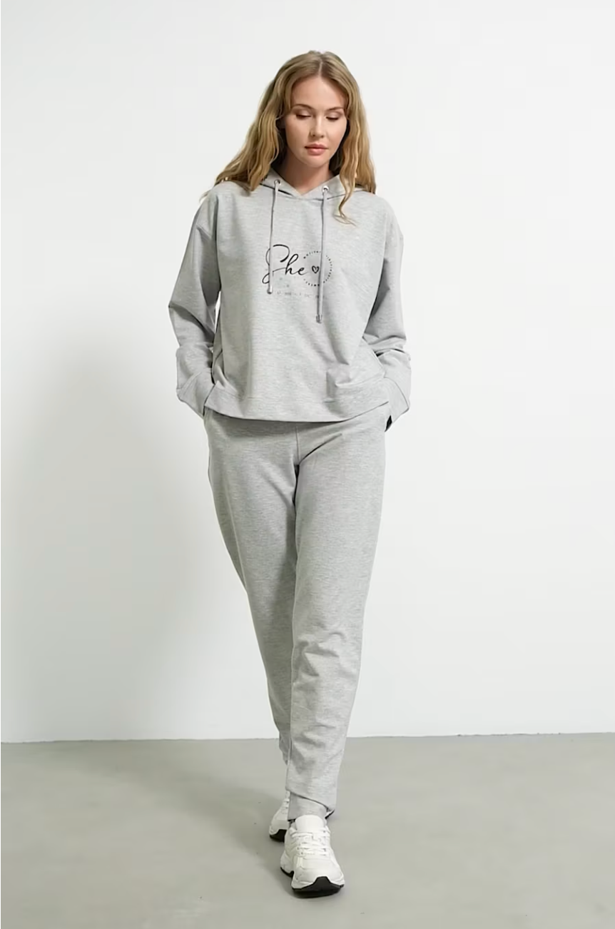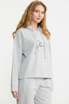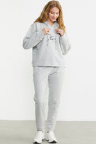 Printed Detailed Hooded Tracksuit - Gray