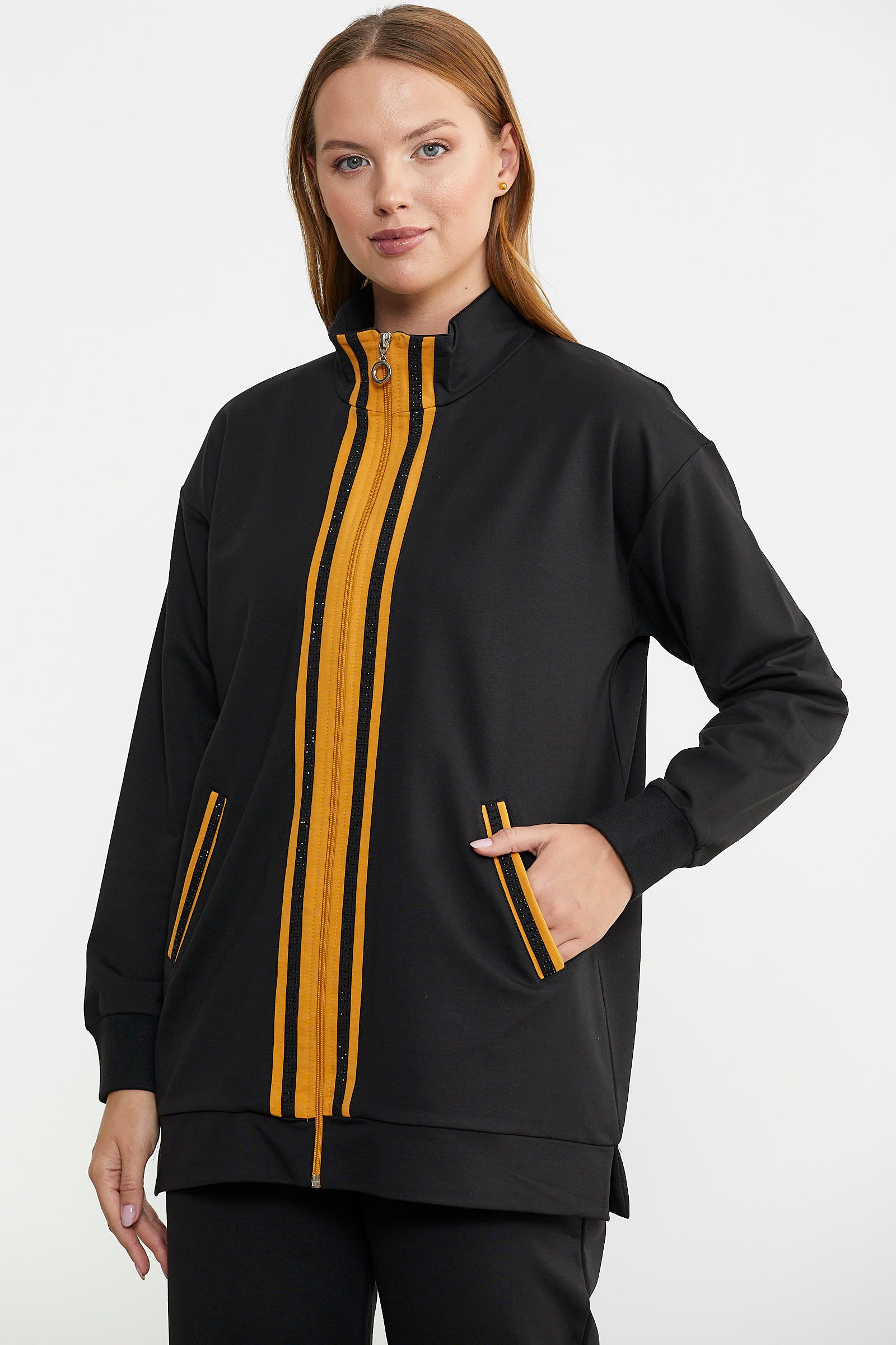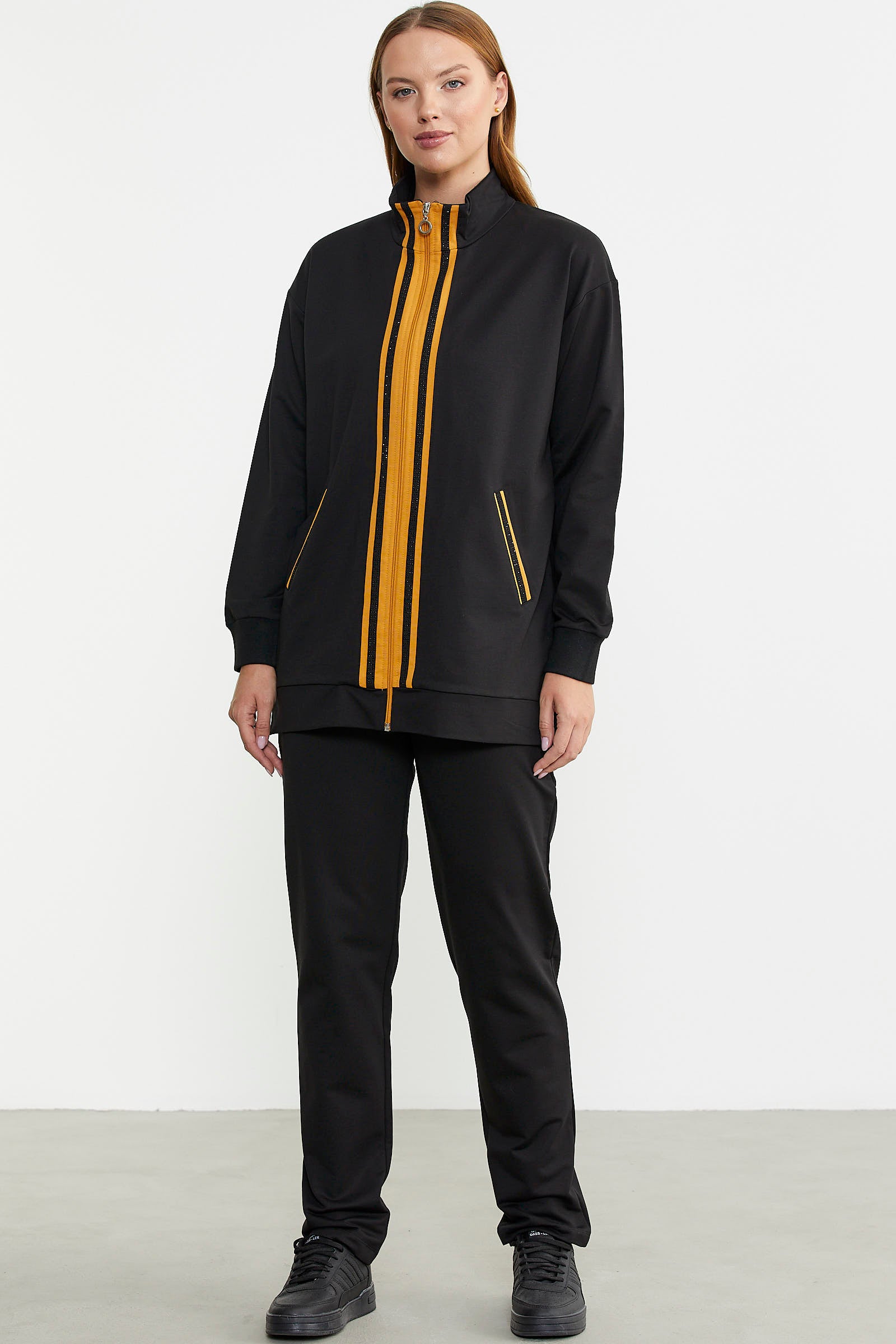 The high collar, stone detailed pocket tunic tracksuit promises a beautiful look while making you feel comfortable.