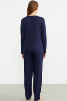 Zero Collar Buttoned Pajama Set - Navy Blue