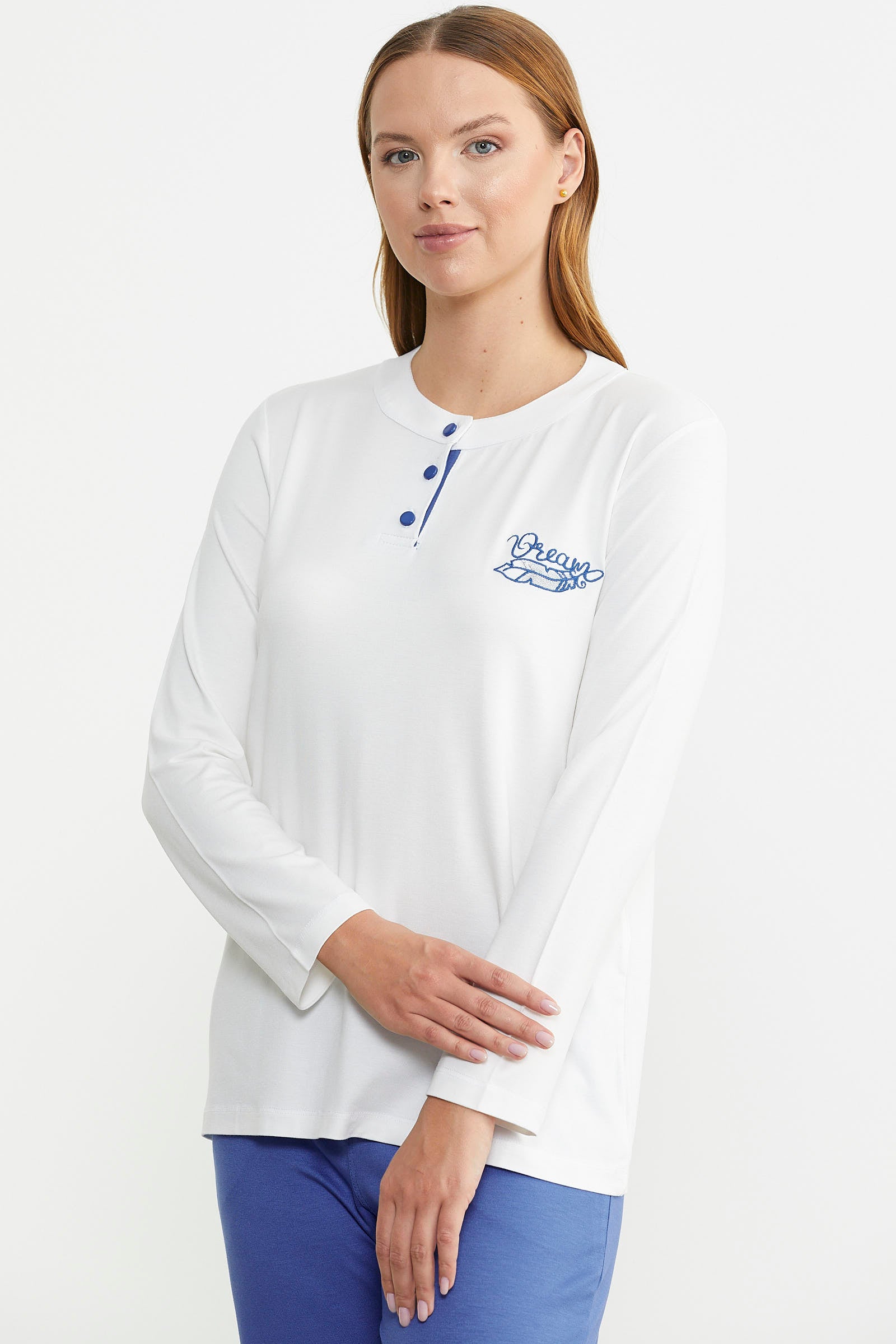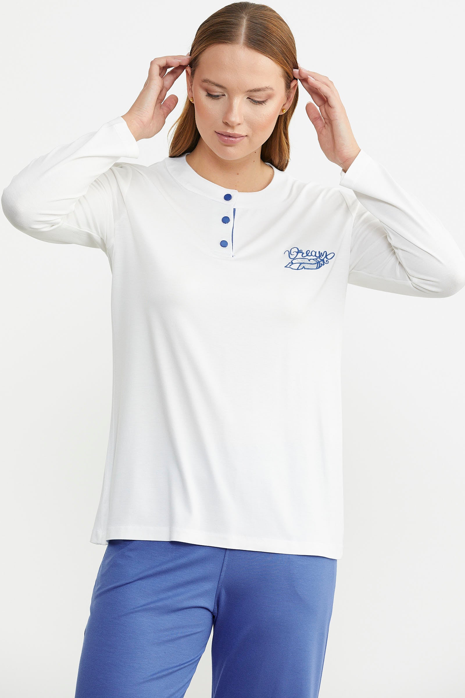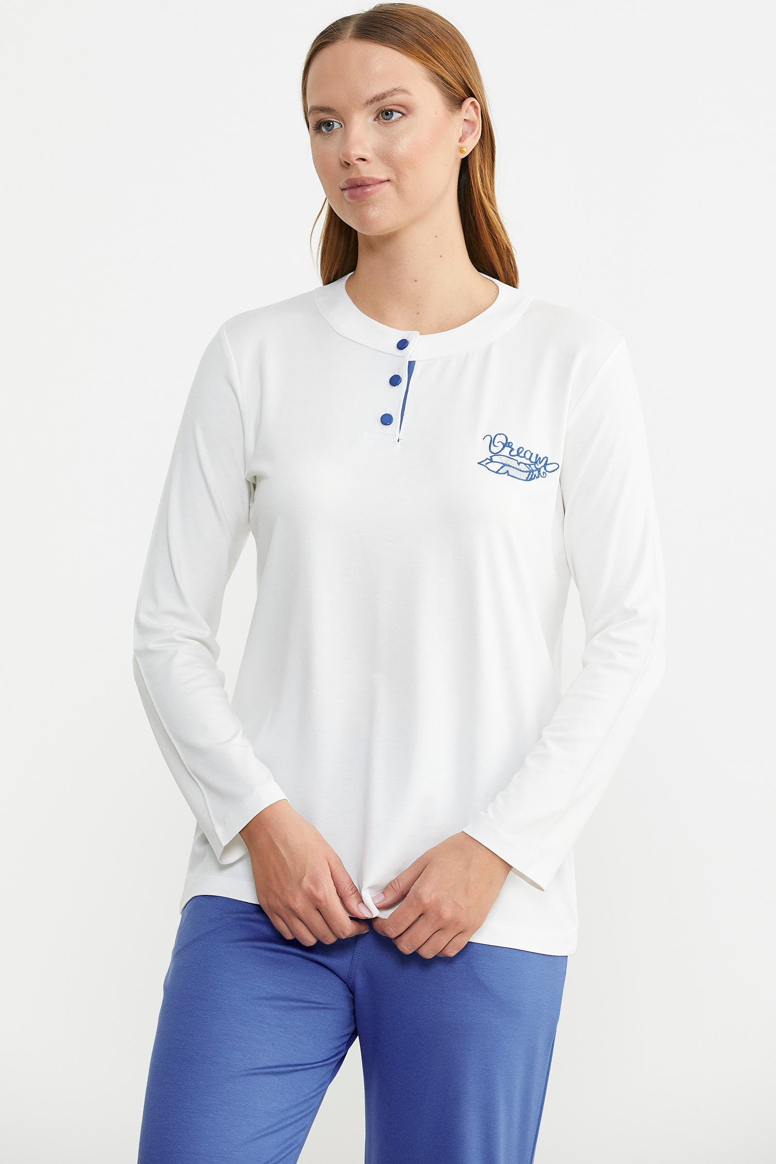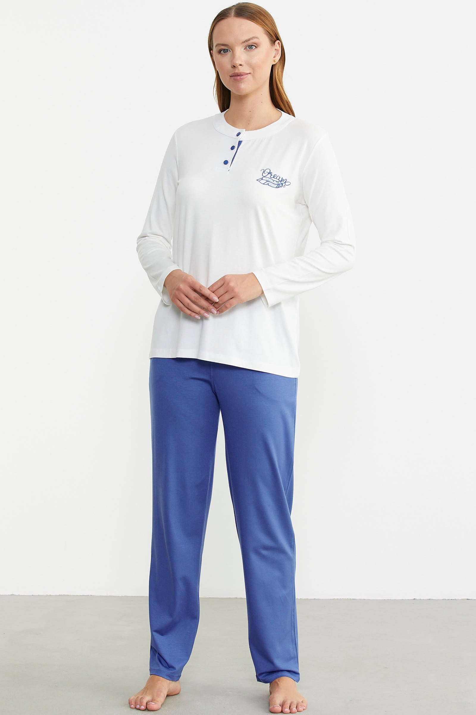 Made from the highest quality fabrics, the pajama set stands out with its simple appearance and comfort.