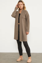 The off-shoulder, shawl collar, long knit cardigan will be an effortless piece that you can easily add to your combinations with its simple and useful look. The cardigan, which makes you feel both comfortable and warm, will add a sporty look to your street style.