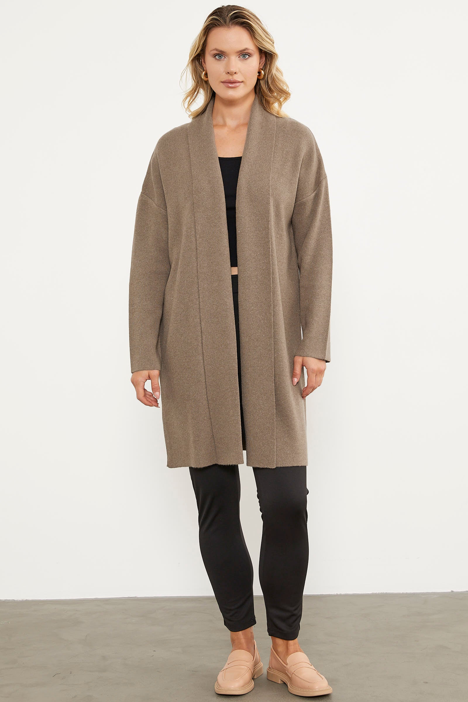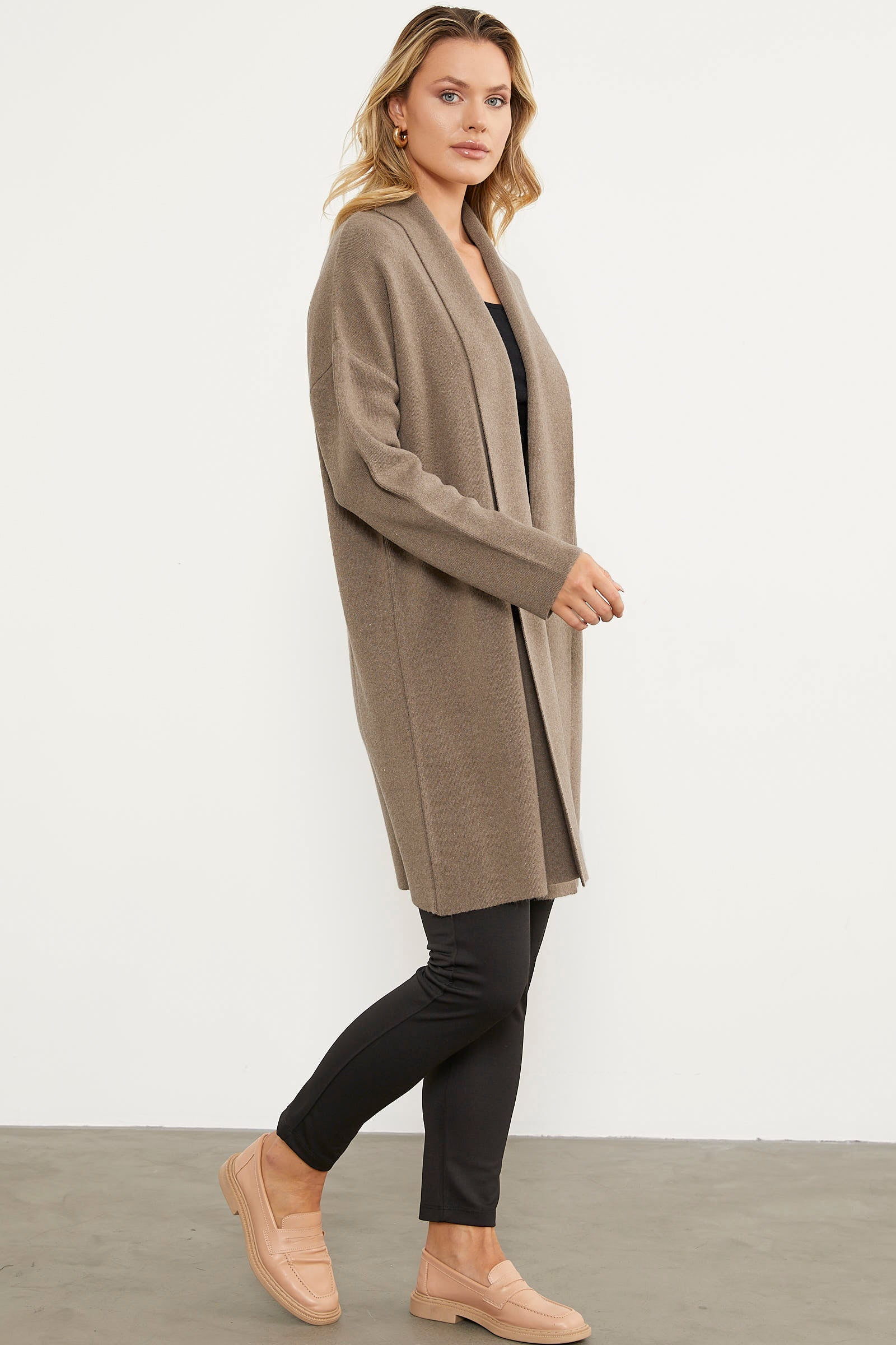 Plus Size Shawl Collar Wool Knitted Cardigan - Milky Coffee