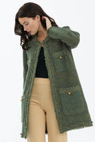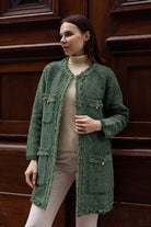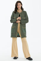 Zero Collar Lined Knitwear Jacket - Green - Khaki