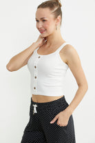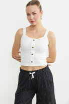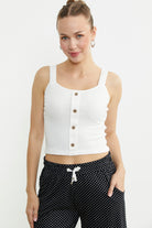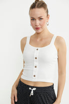 Fitilli Düğme Detaylı Basic Atlet - Ekru
