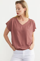 Elastic Waist V Neck Crop Blouse - Rose