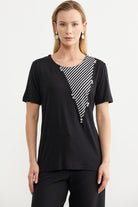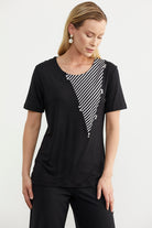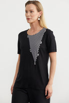 Striped Combined Flowy Blouse - Black