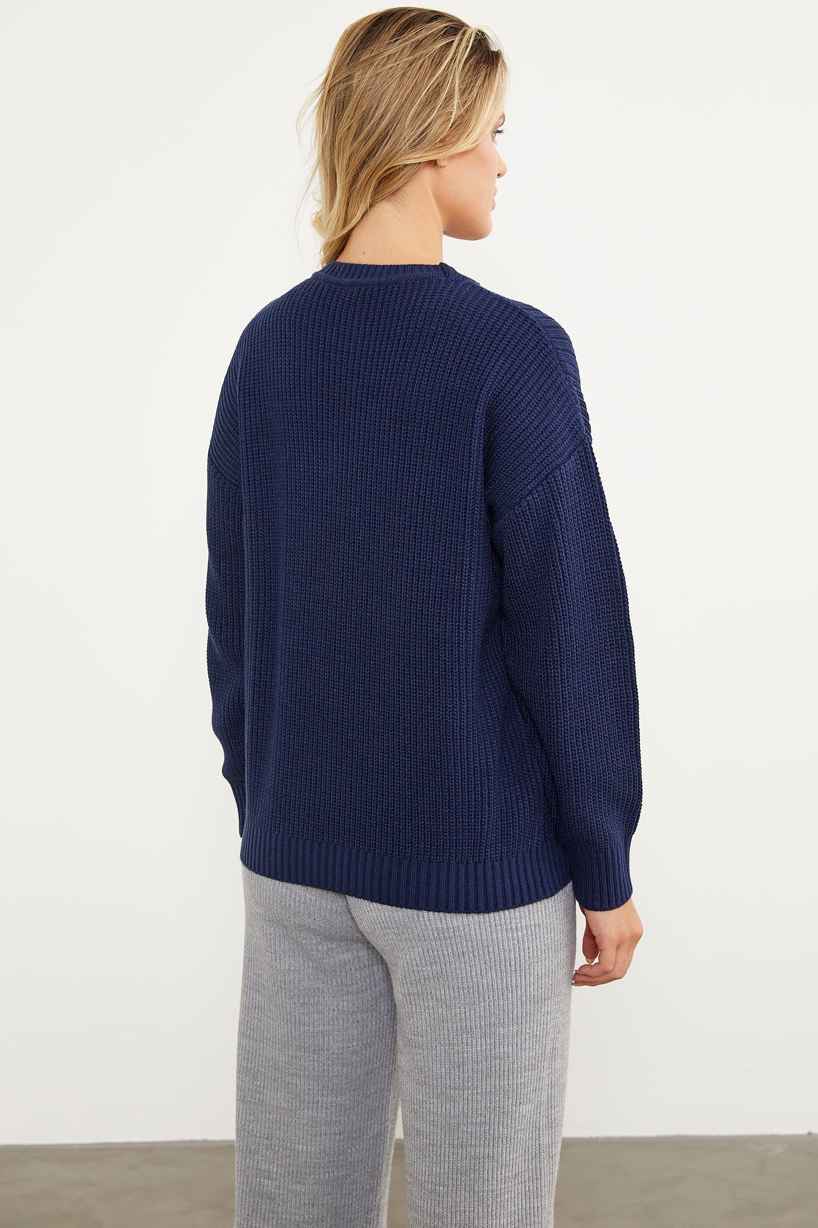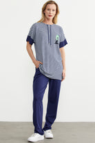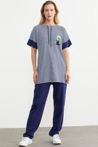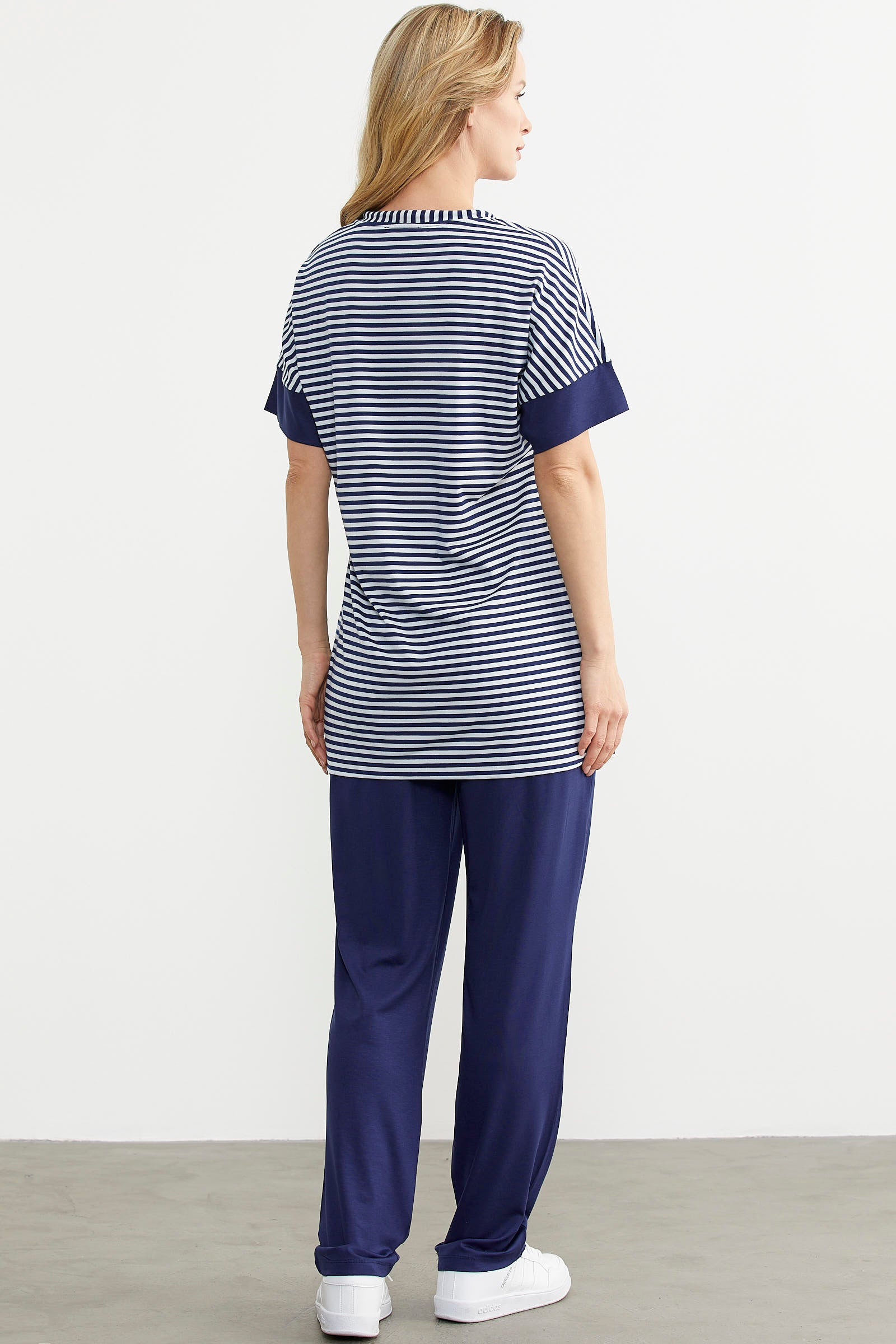 Striped Combed Cotton Trouser Suit - Navy Blue