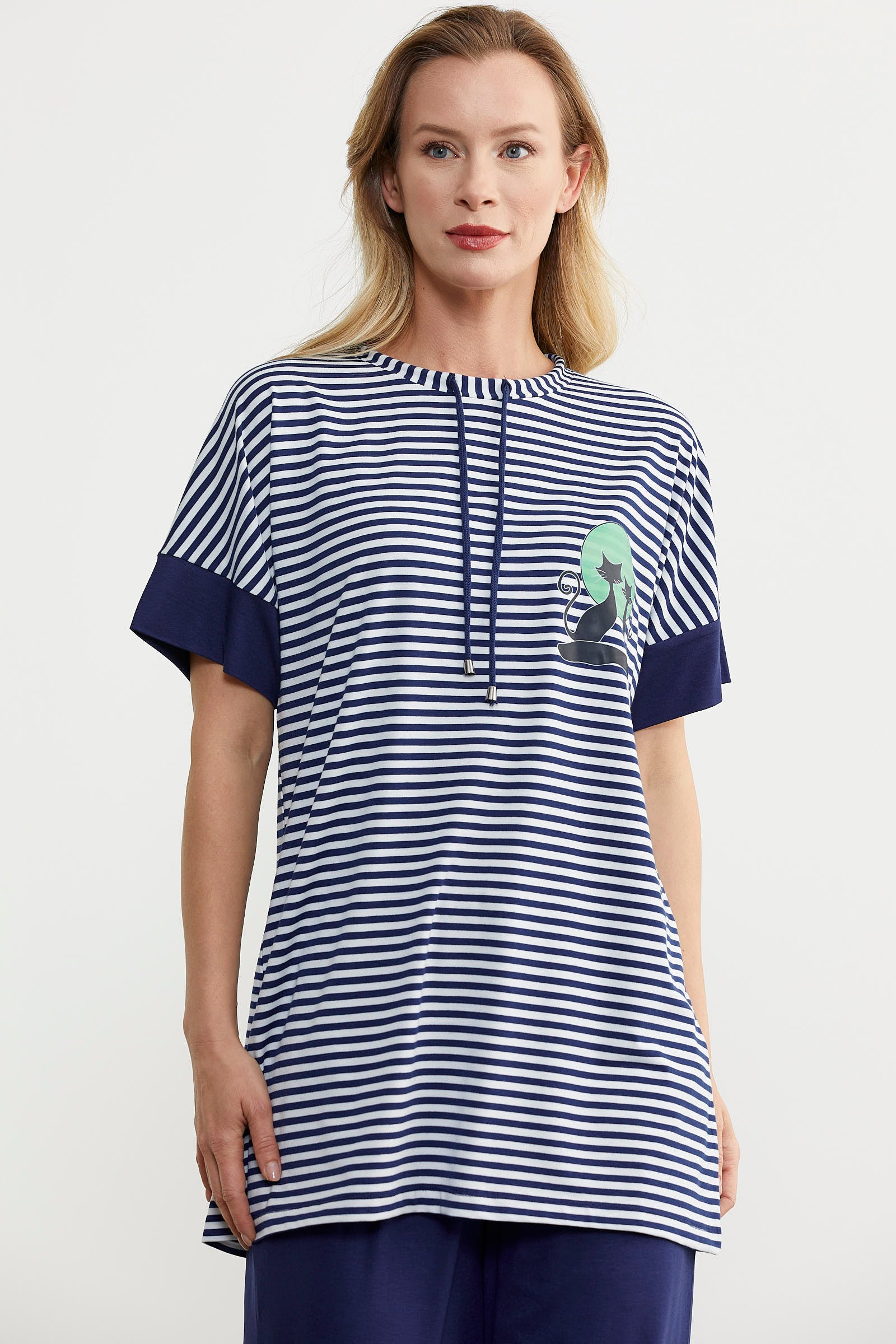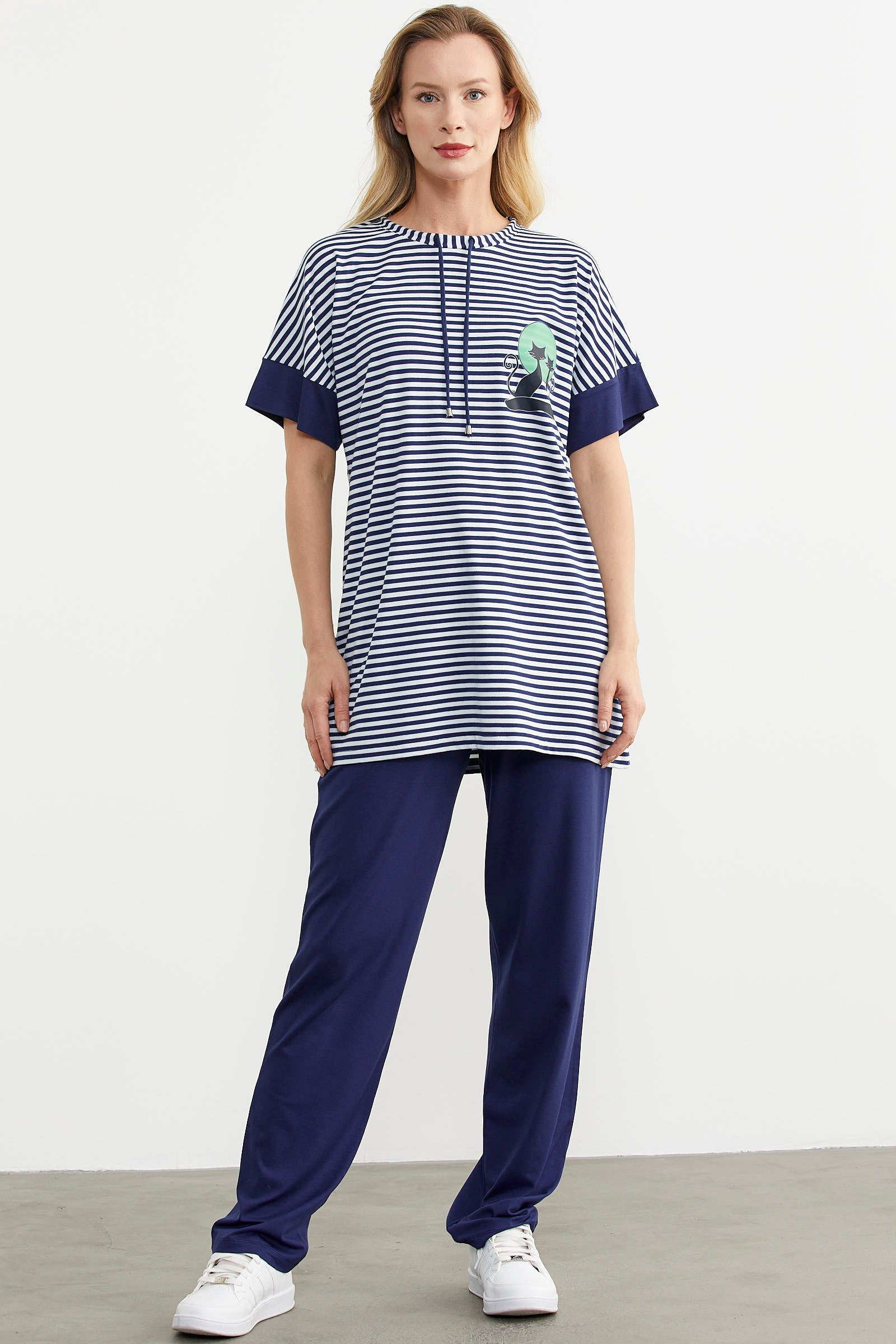 Providing a sporty look with the rope detail on the collar, the striped cotton suit brings your style together with comfort.
