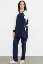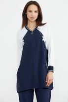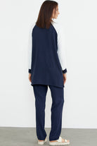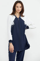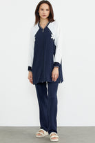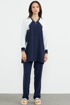 Embroidered Detailed Tunic Crepe Suit - Navy Blue
