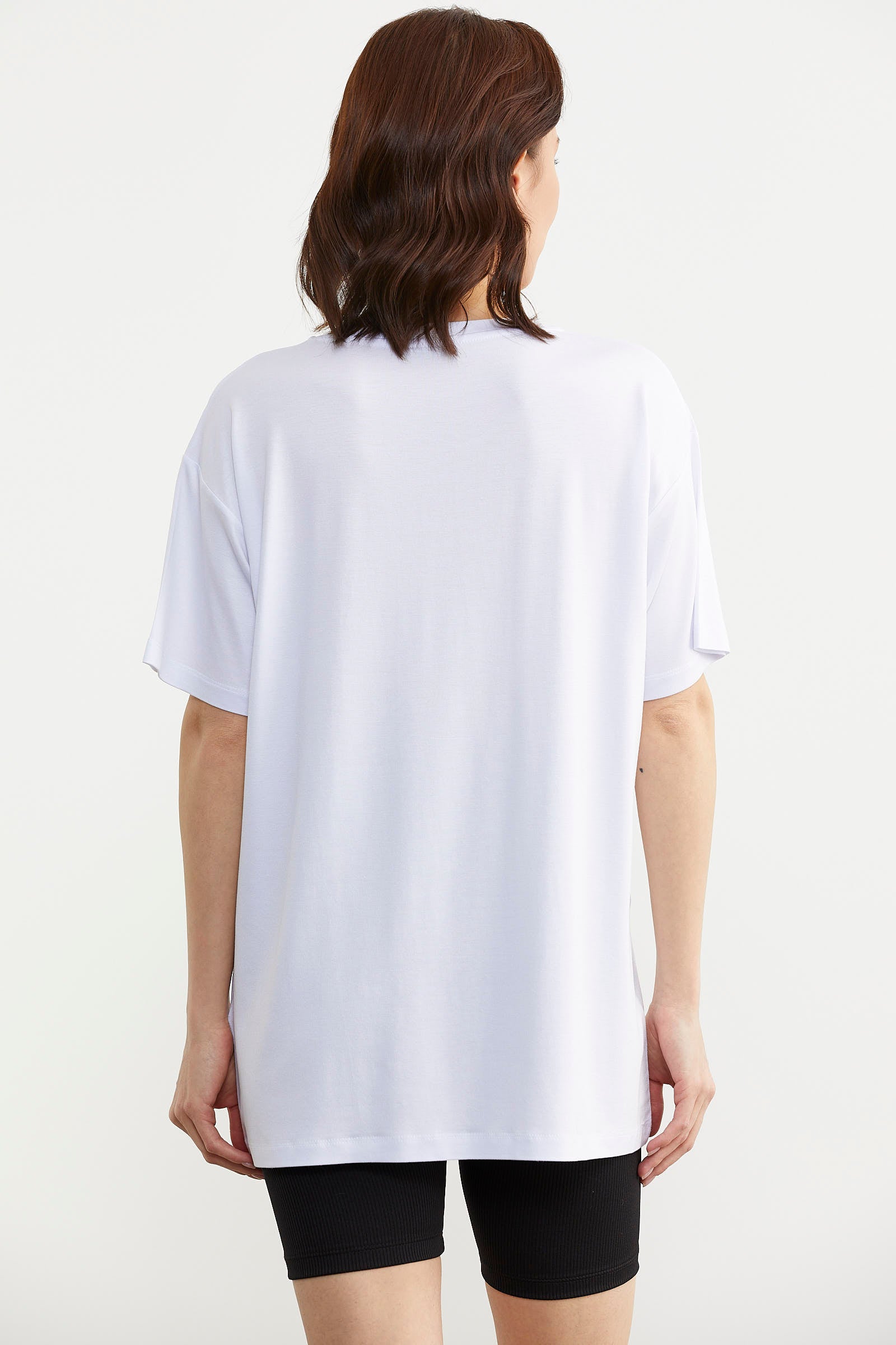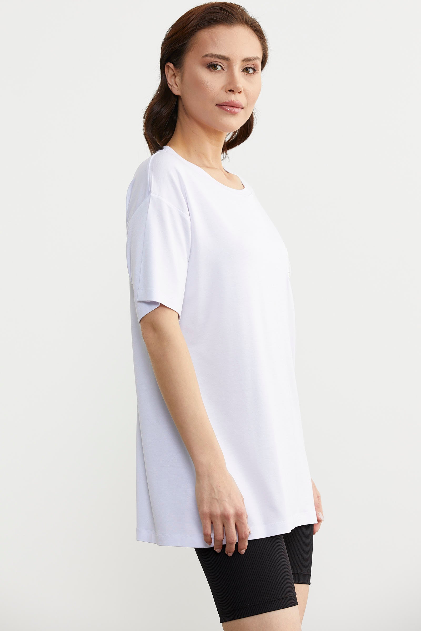 Plus Size Low Sleeve Combed Cotton T-Shirt - White
