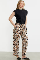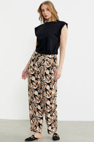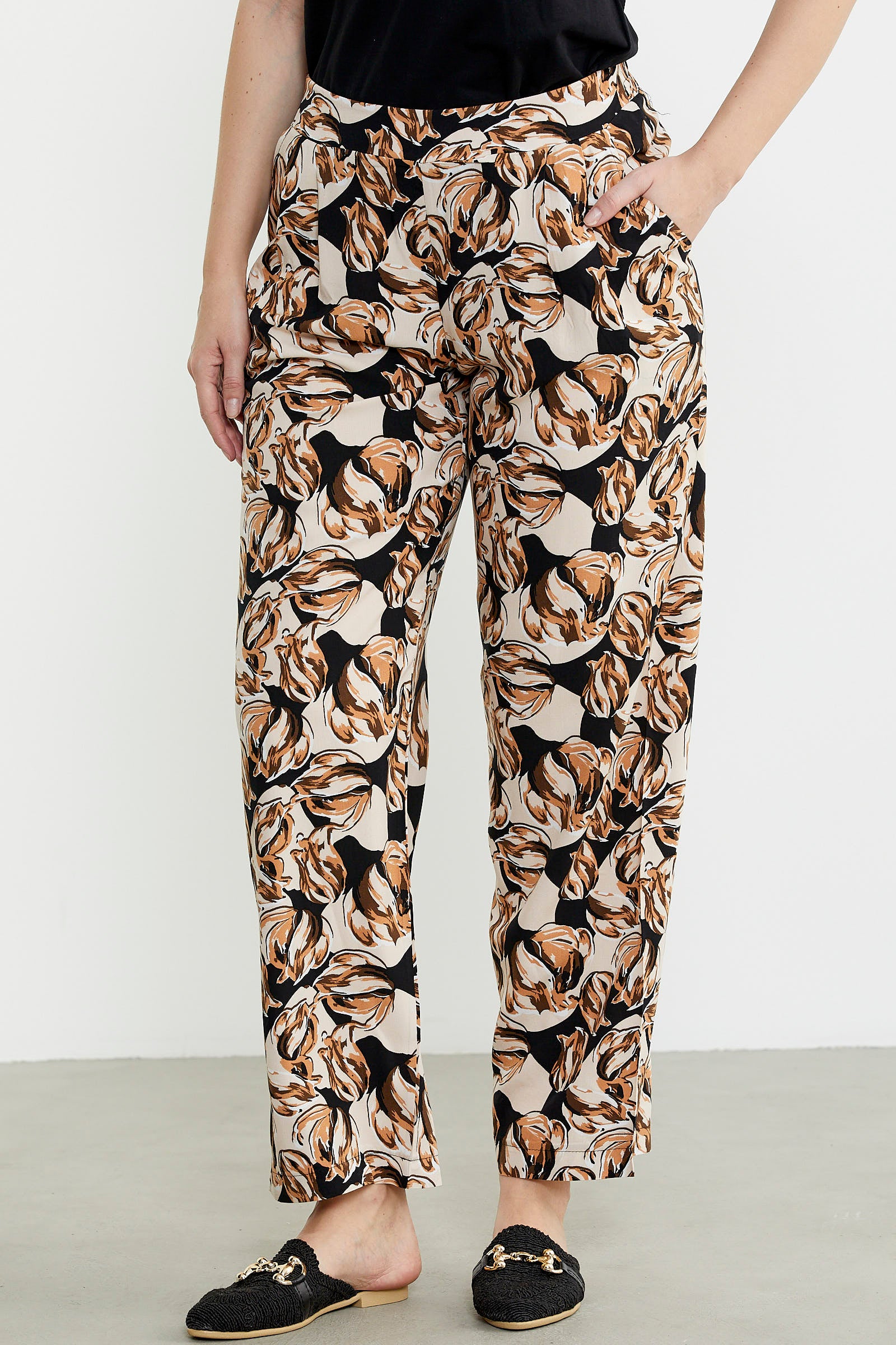 Palazzo trousers made of viscose woven fabric. Elastic at the back of the waist and pockets. Wide fit.