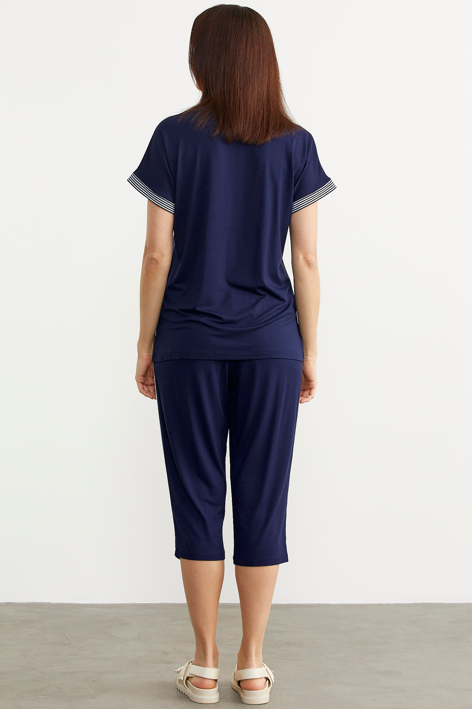 Marine Striped Seasonal Combed Cotton Suit - Navy Blue