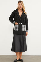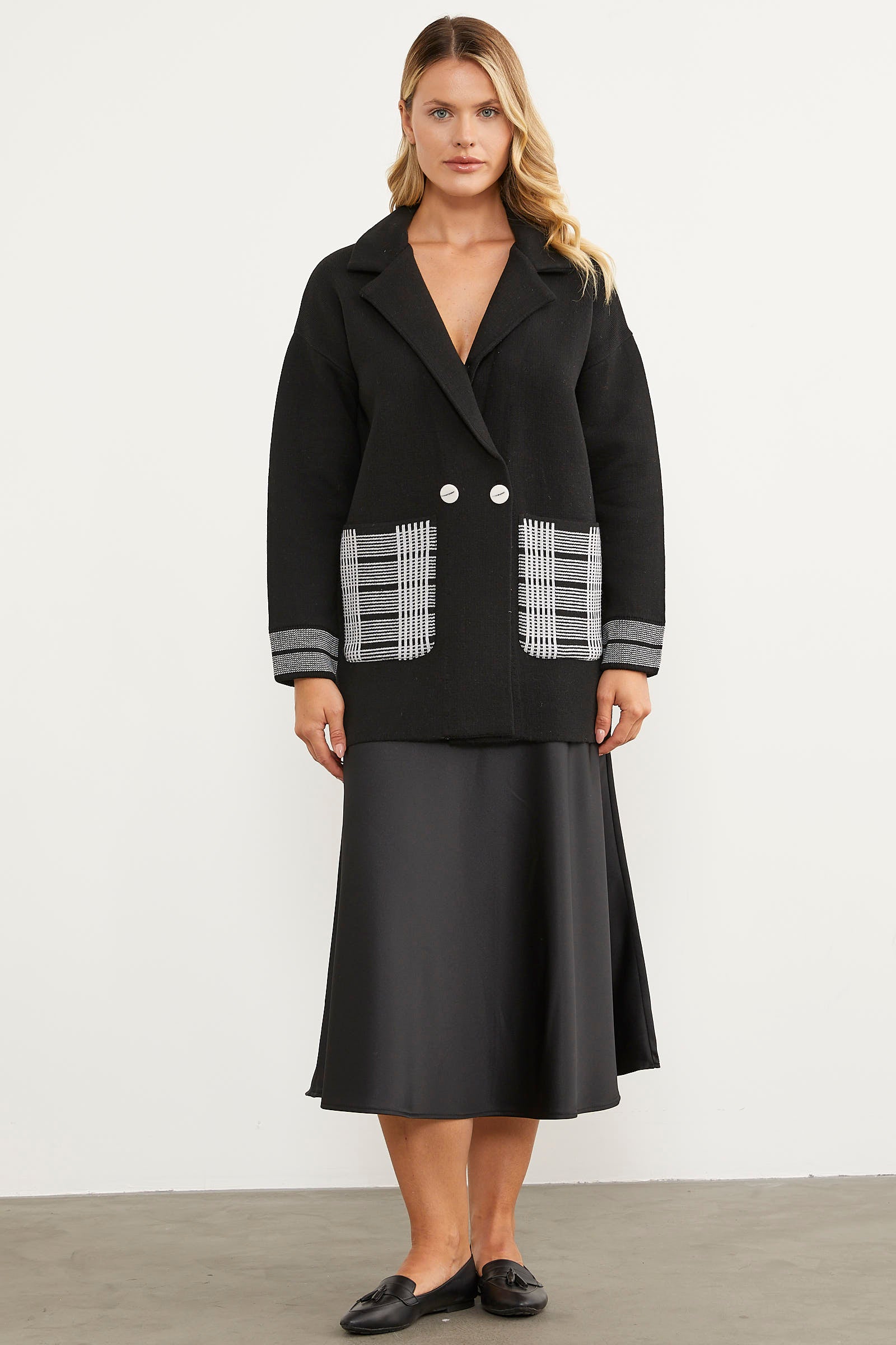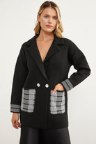 Plaid Detailed Double Breasted Knitwear Jacket - Black