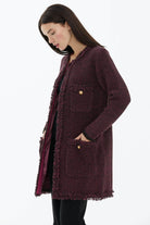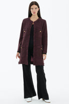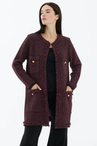 Zero Collar Lined Knitwear Jacket - Brown - Fuchsia