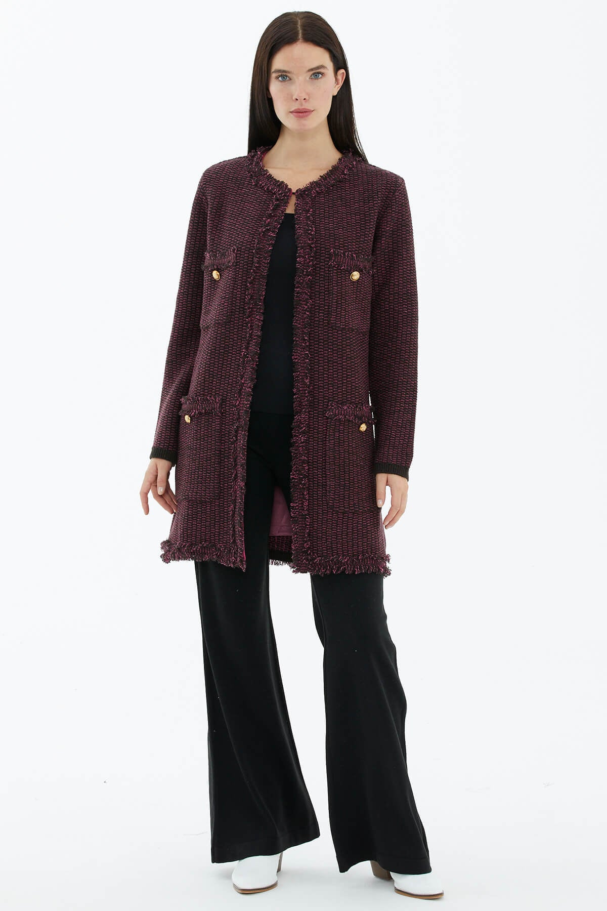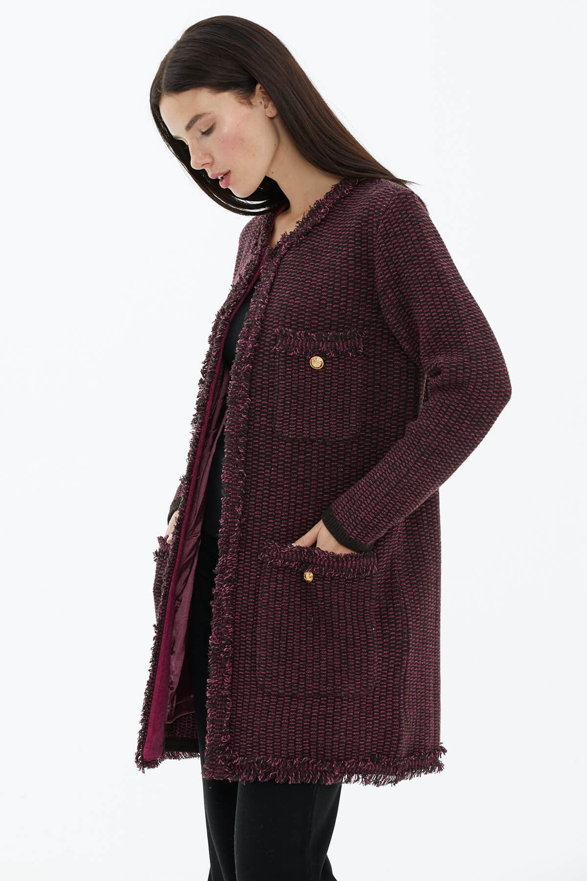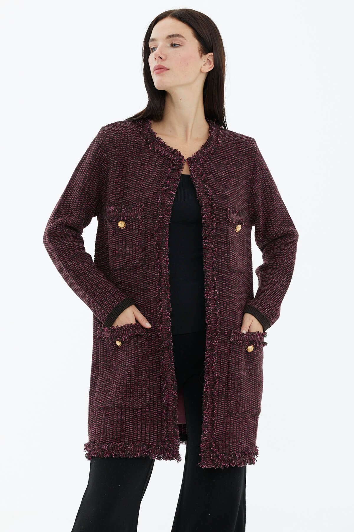 The patterned knitwear jacket, which stands out with its tassel detail, will accompany many of your combinations. You can complete the office elegance with a knitwear jacket, and combine the weekend elegance with jeans in your comfortable combinations.